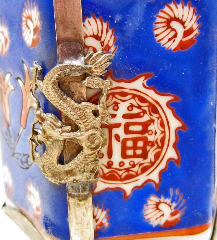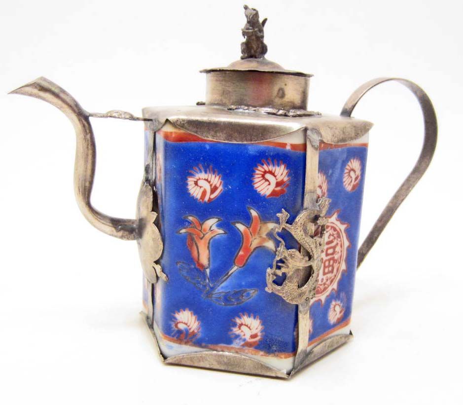Beautiful design, measures approx 4" tall x 2-1/2" x 5-3/8" from handle to spout, makers mark on bottom.