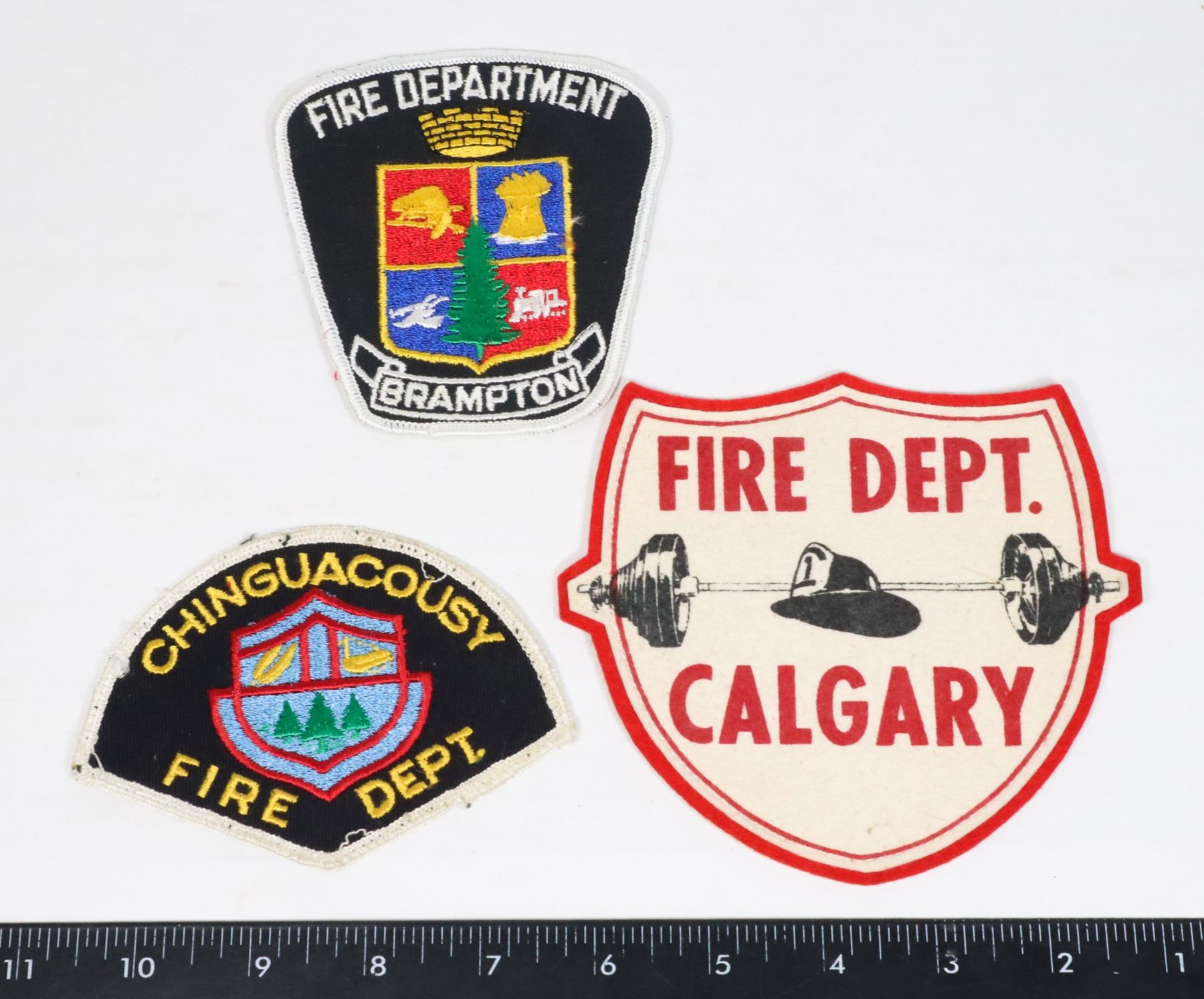VINTAGE BRAMPTON FIRE DEPARTMENT PATCH AND VINTAGE CALGARY FIRE DEPARTMENT LARGE PATCH BY BYD COWAN LTD EDMONTON ALBERTA CLOTH