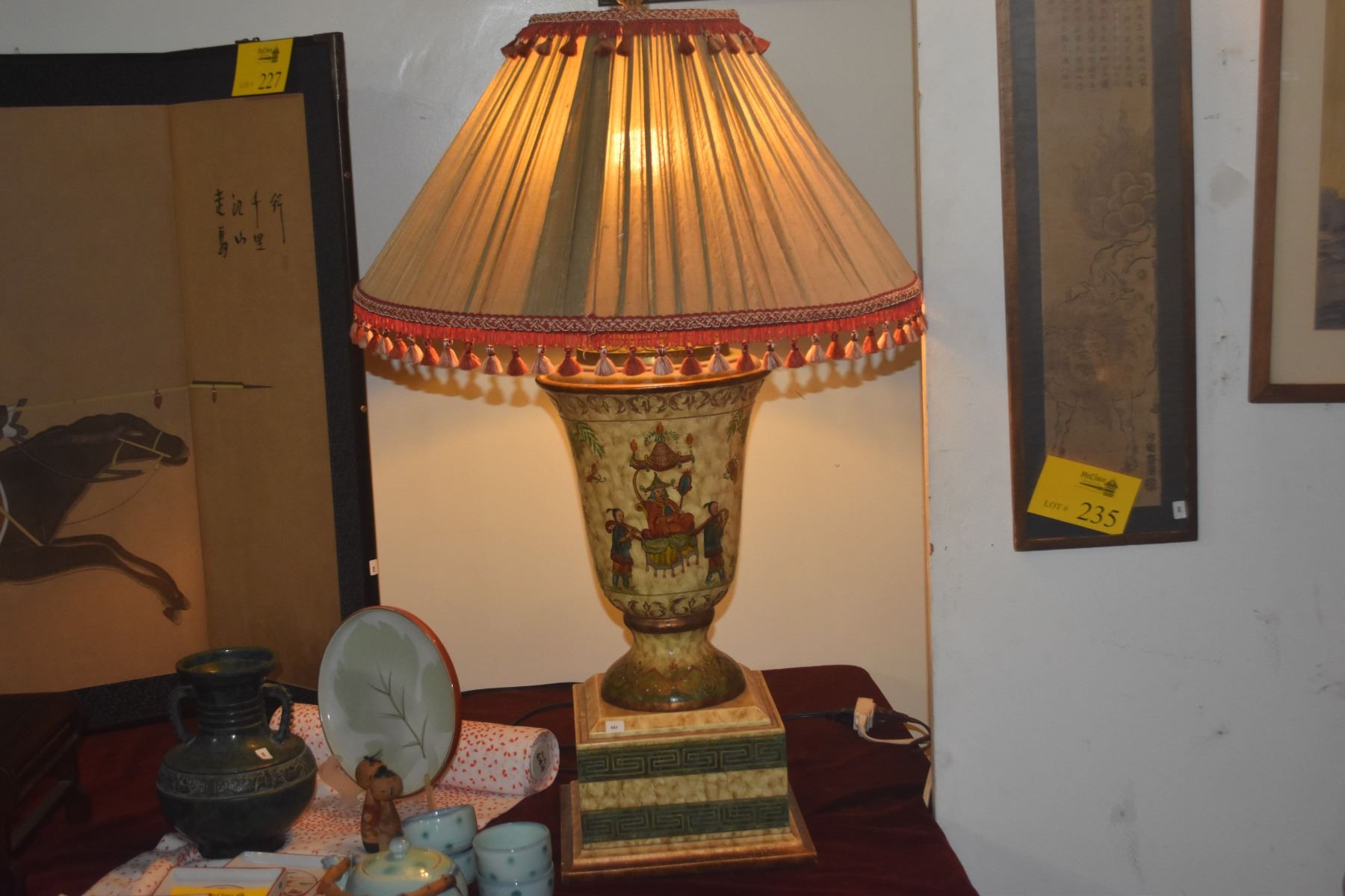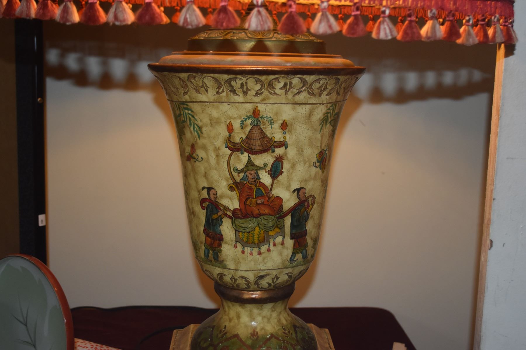 VINTAGE CHINOISERIE LAMP W/SHADE