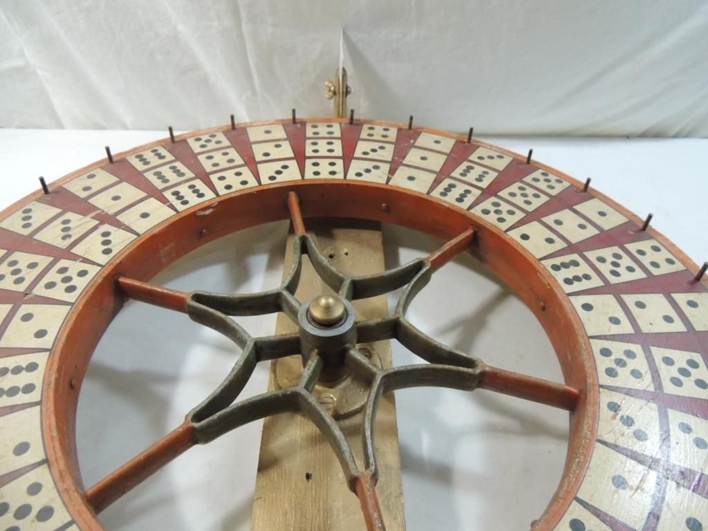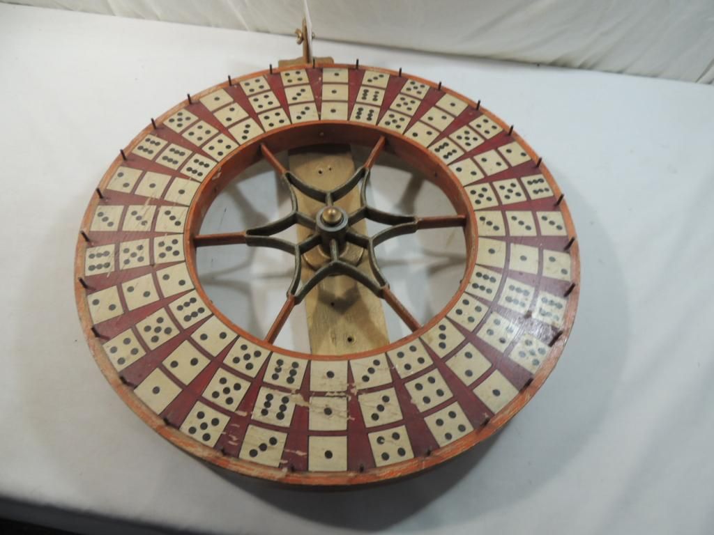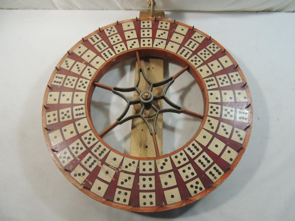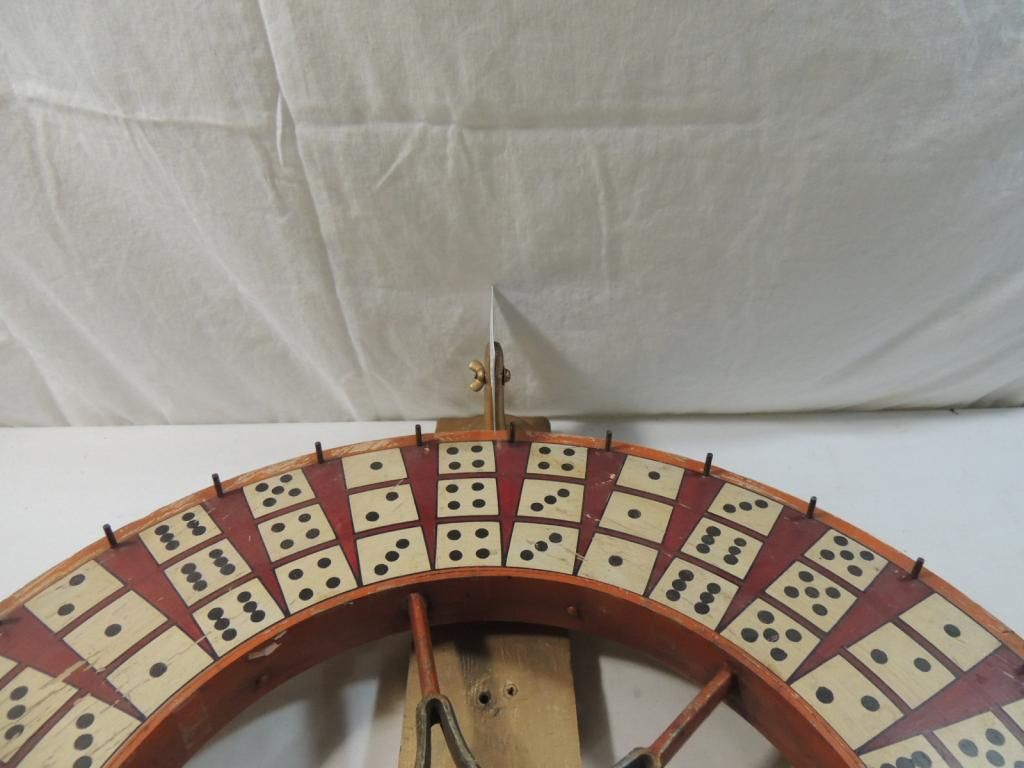 DICE WHEEL GAMBLING CASINO CLUB WALL MOUNTED CHUCK A LUCK WHEEL. VINTAGE WHEEL AS SHOWN SEE PHOTO FOR MORE DETAILS.