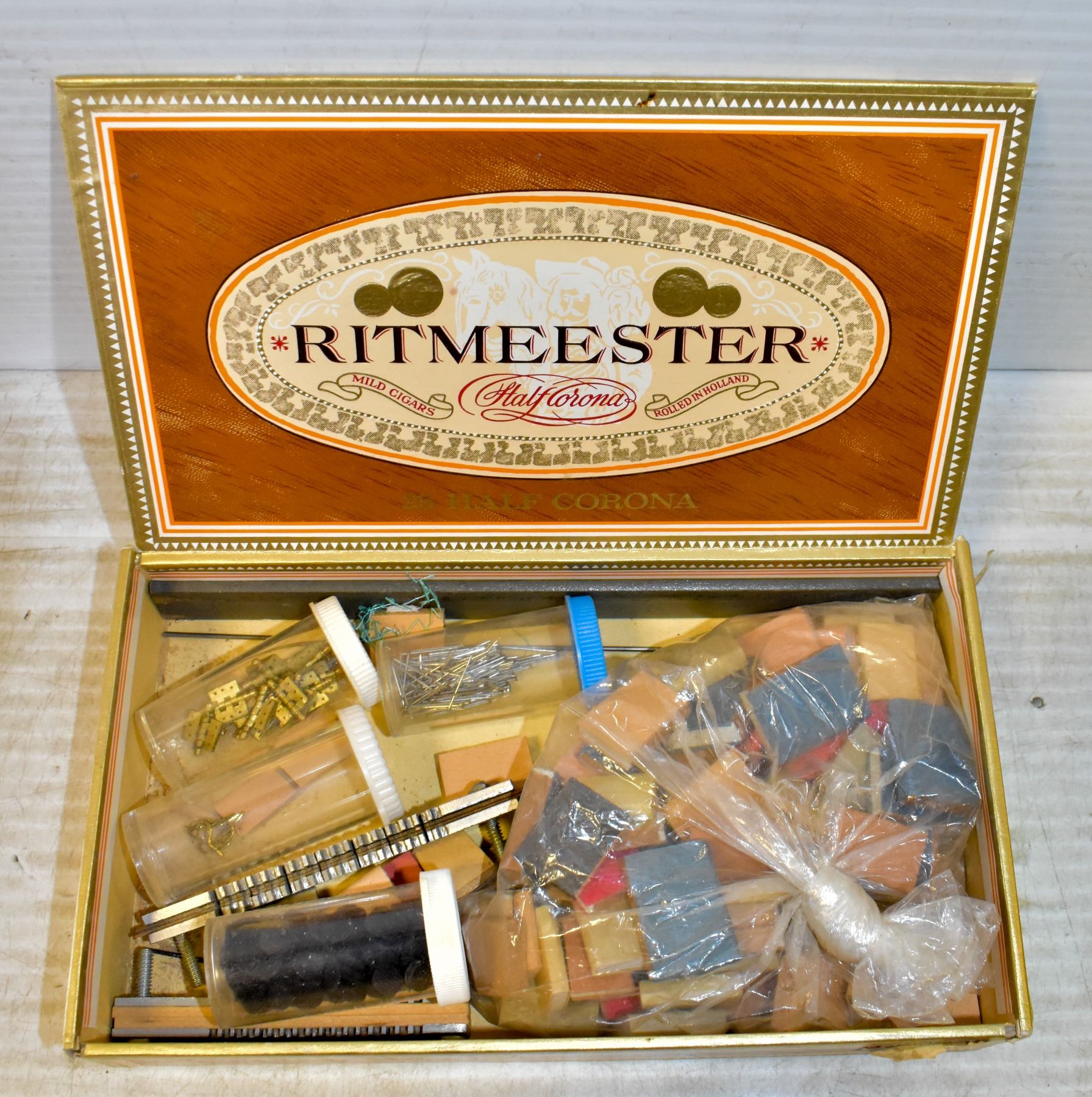 VINTAGE CIGAR BOX FULL OF MINITURE HARDWARE