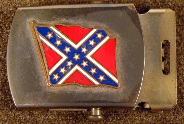 VINTAGE RAISED CIVIL WAR CONFEDERATE FLAG ON U.S. BRASS BELT BUCKLE