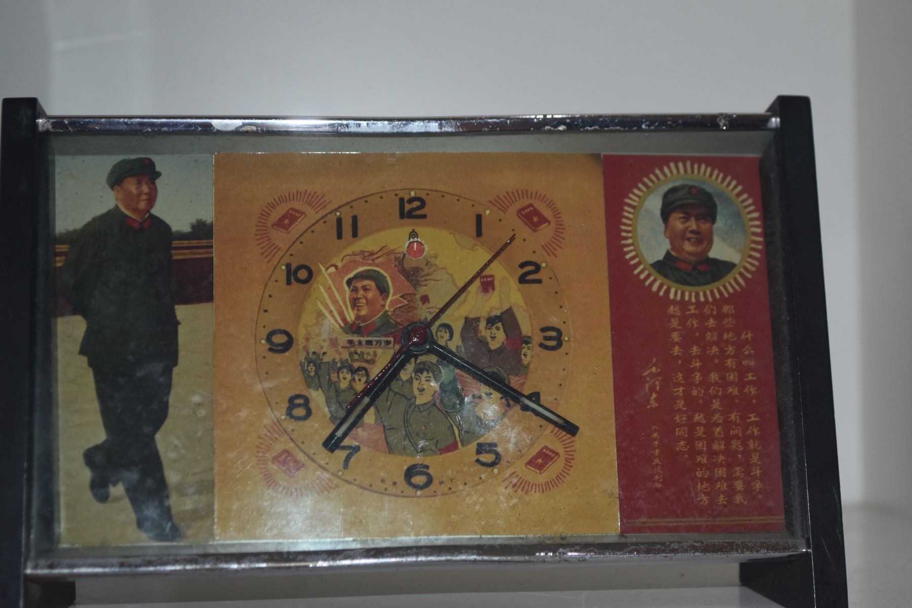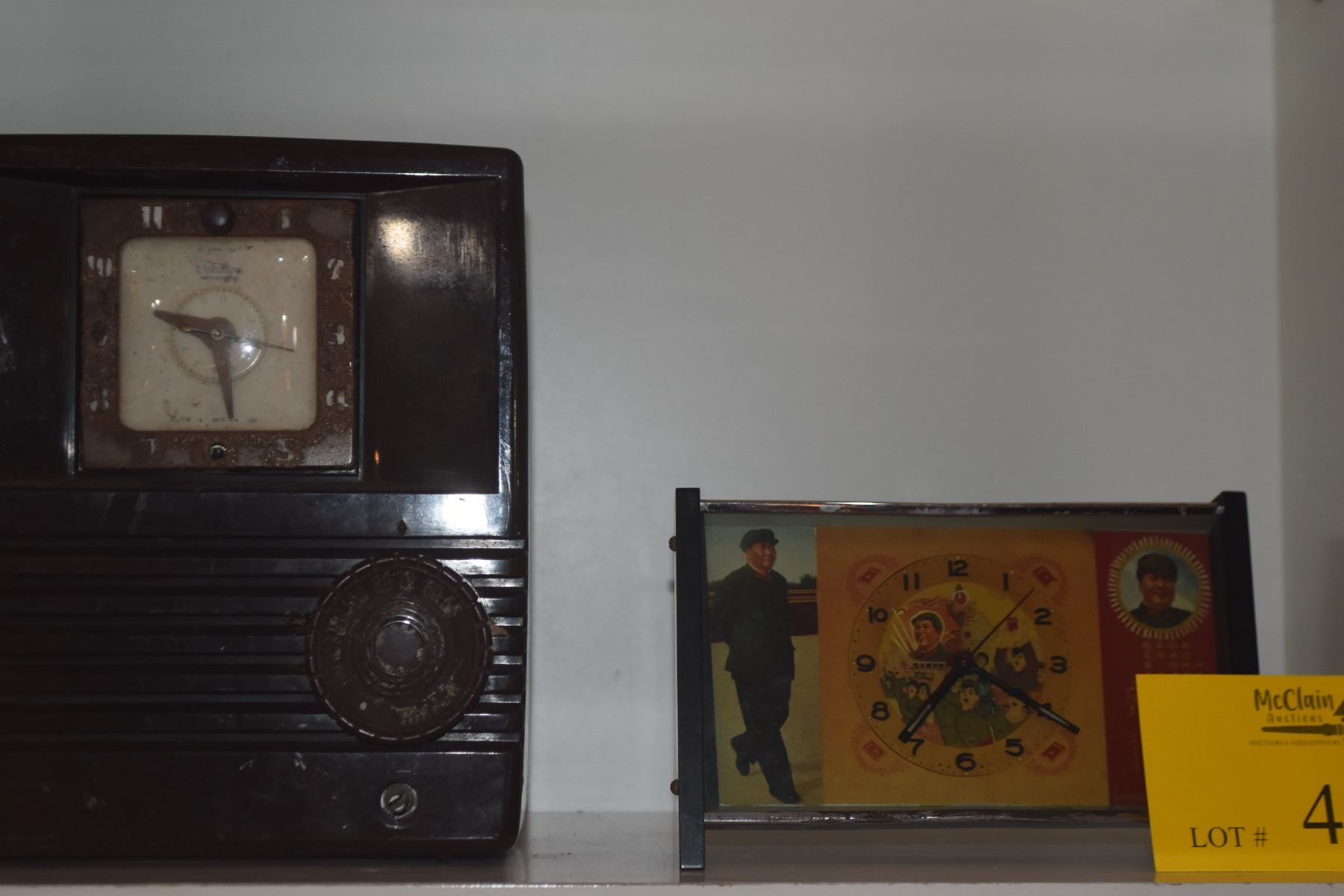 VINTAGE CLOCK/RADIO (BAKELITE) & VINTAGE CHINESE PROPAGANDA MANTLE CLOCK
