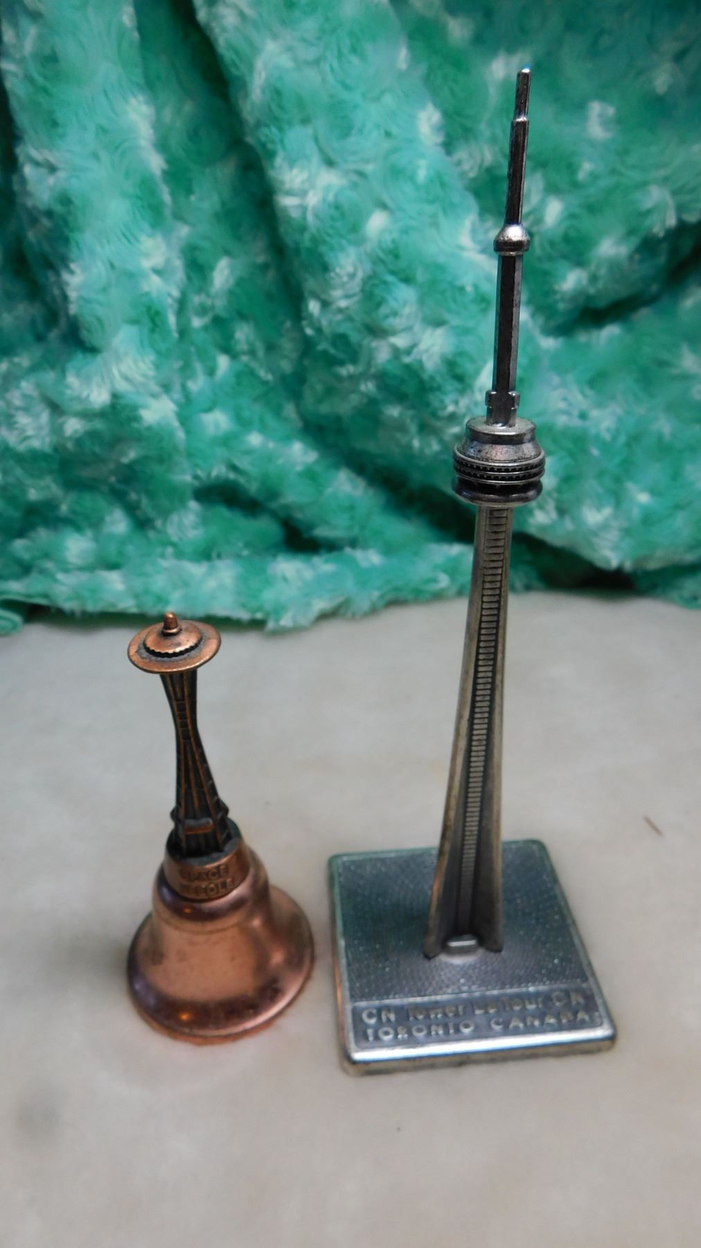 VINTAGE, CN TOWER AND SPACE NEEDLE, BELL ORNAMENTS