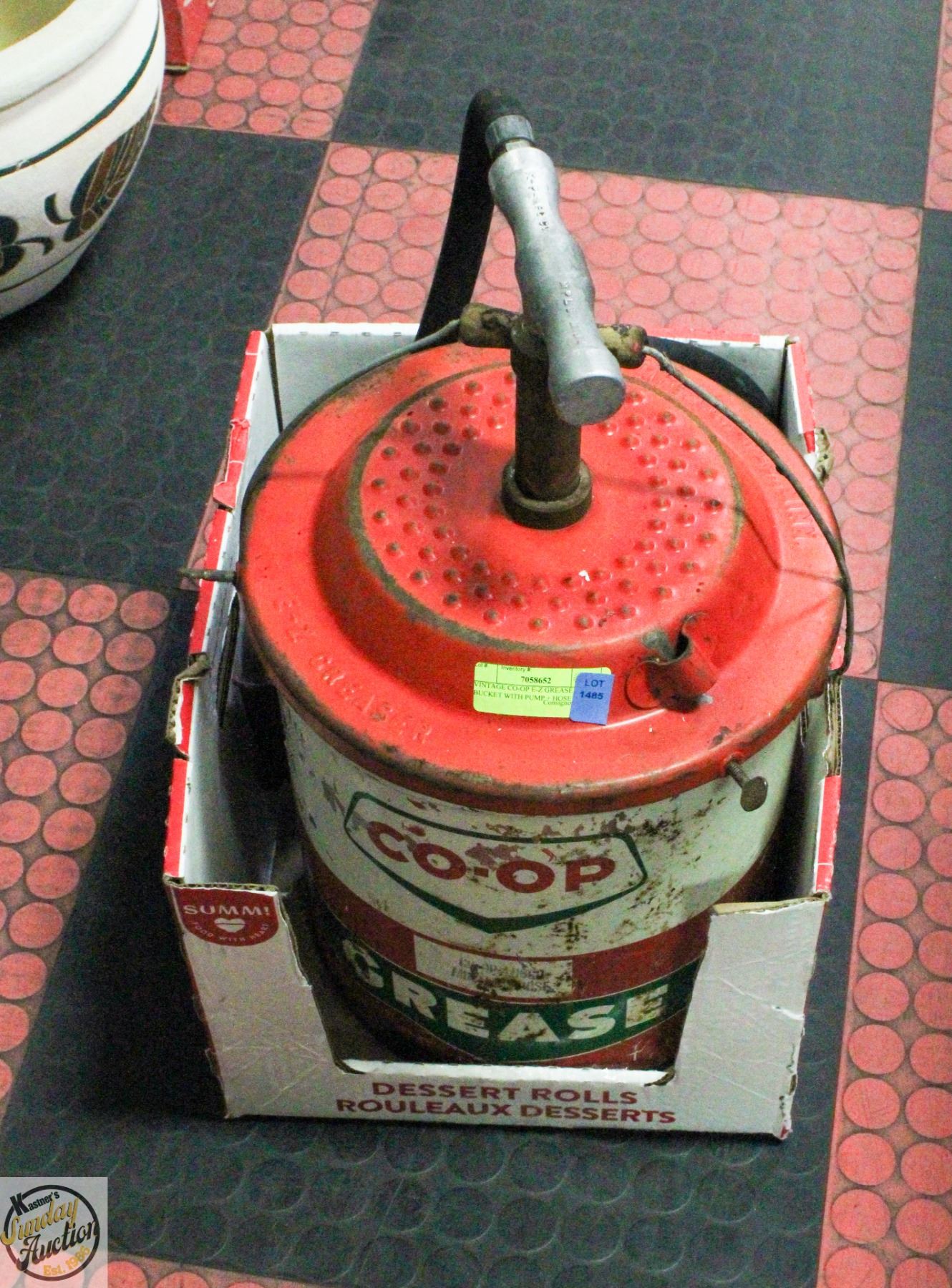 VINTAGE CO-OP E-Z GREASE BUCKET WITH PUMP + HOSE