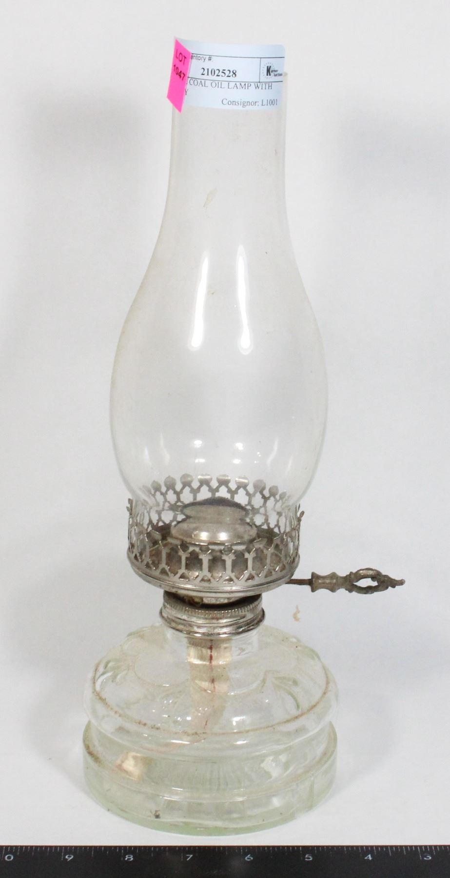 VINTAGE COAL OIL LAMP WITH CHIMNEY
