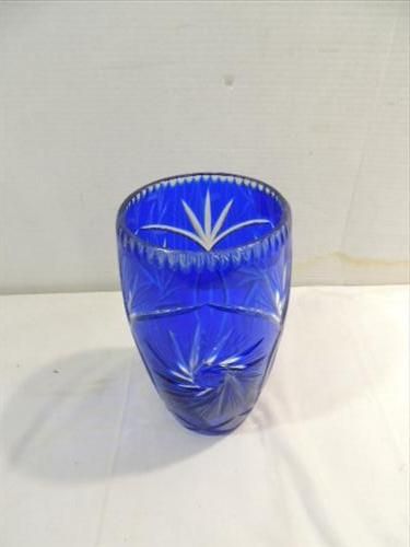 VINTAGE COBALT BLUE CUT CRYSTAL 10"H VASE. NO MAKER MARK. AS SHOWN. VIEW PICTURE FOR DETAIL.