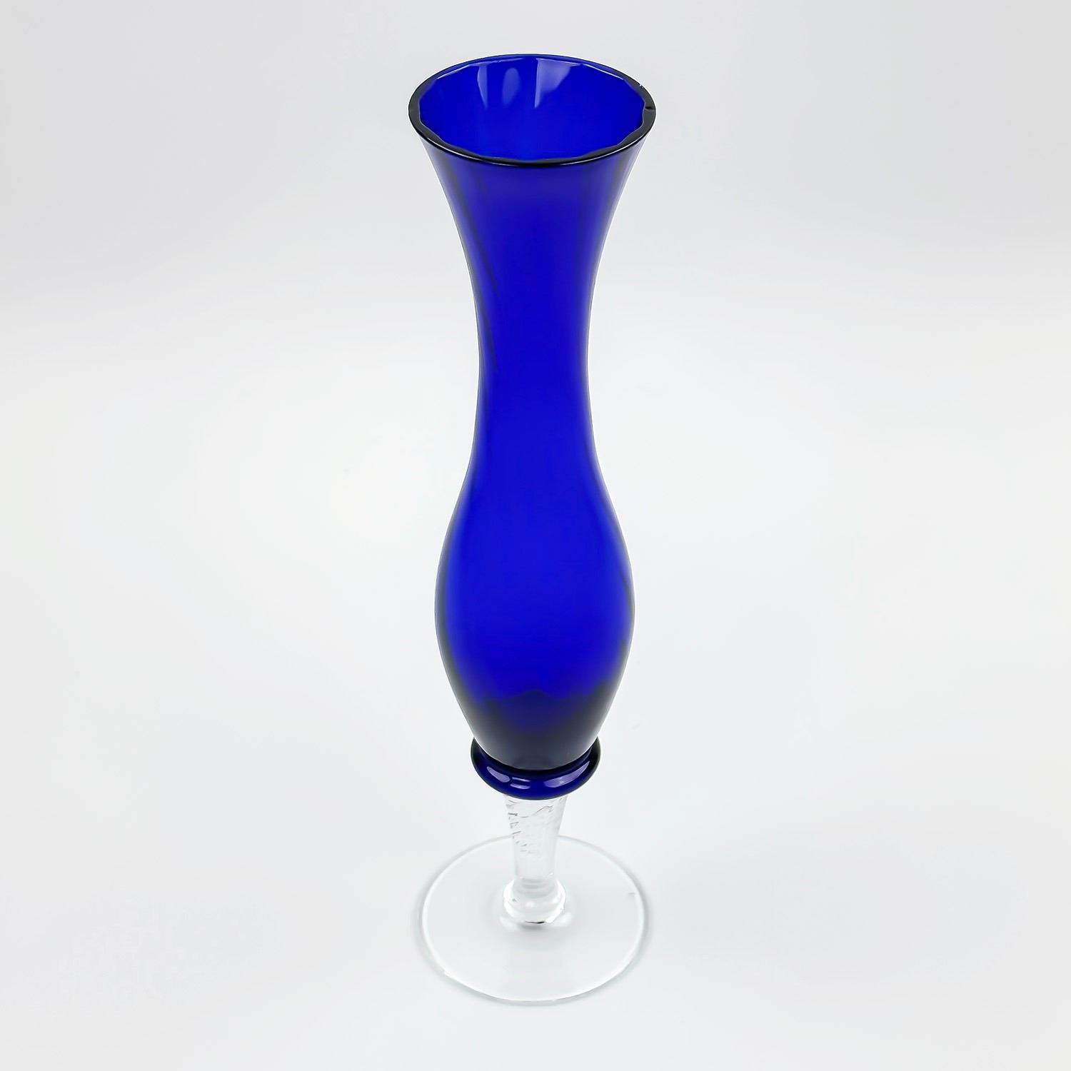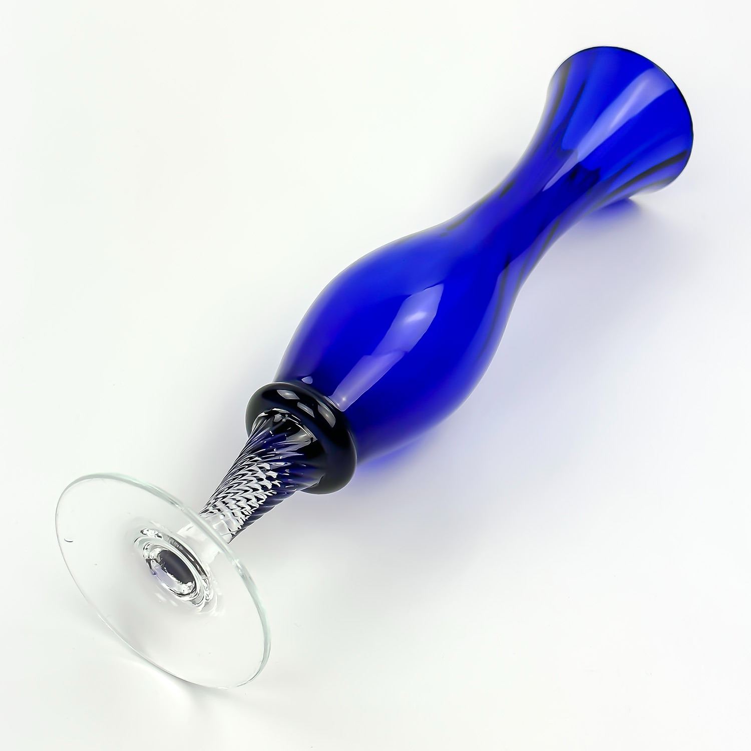 #8161 - VASE HAS A FLUTED GLASS SPIRAL SHAPE ON THE INSIDE WITH A SHORT SPIRAL STEM BASE. MEASURES: 10” (25.5 CM) TALL BY 2.5” (6.5 CM) DIAMETER BASE