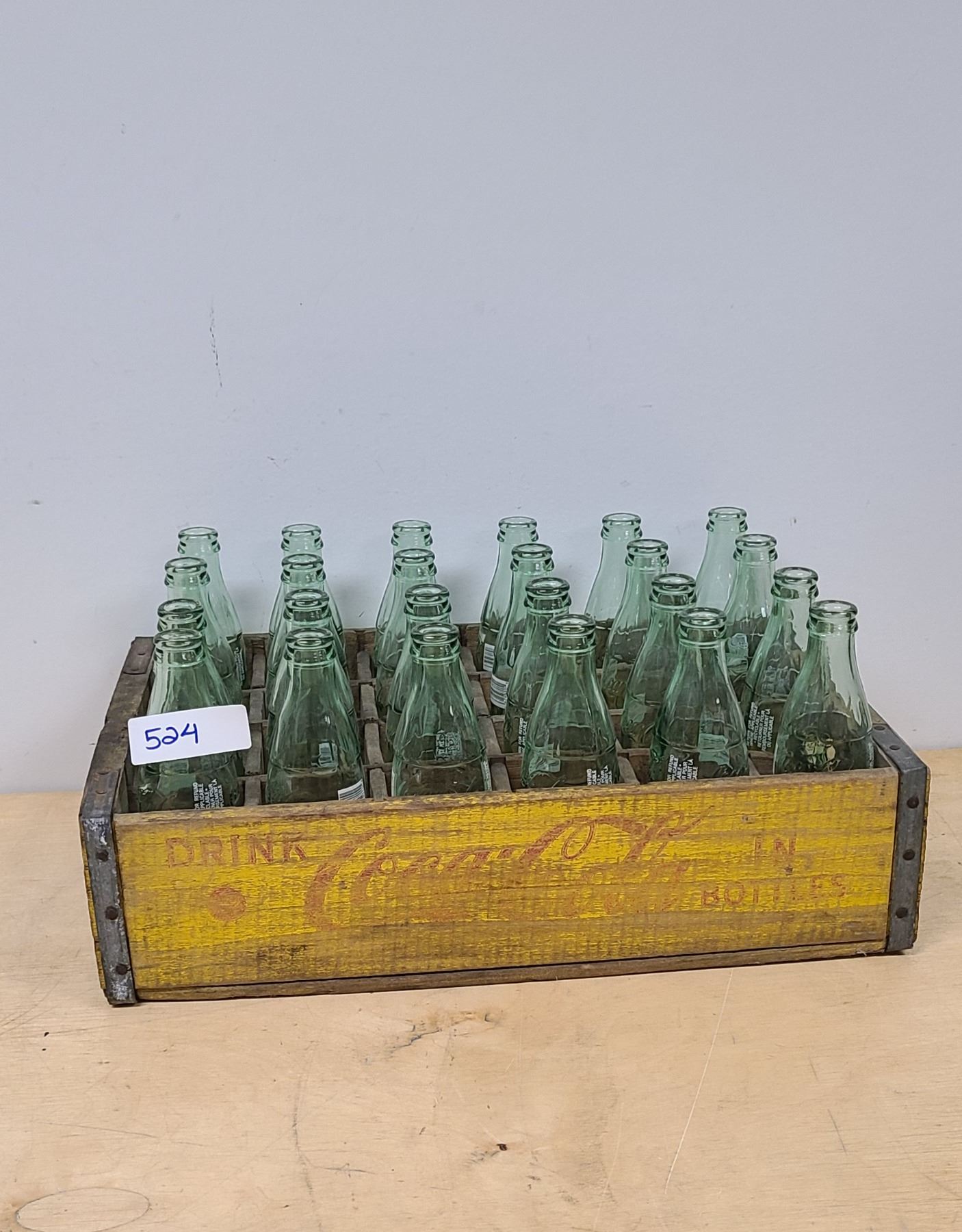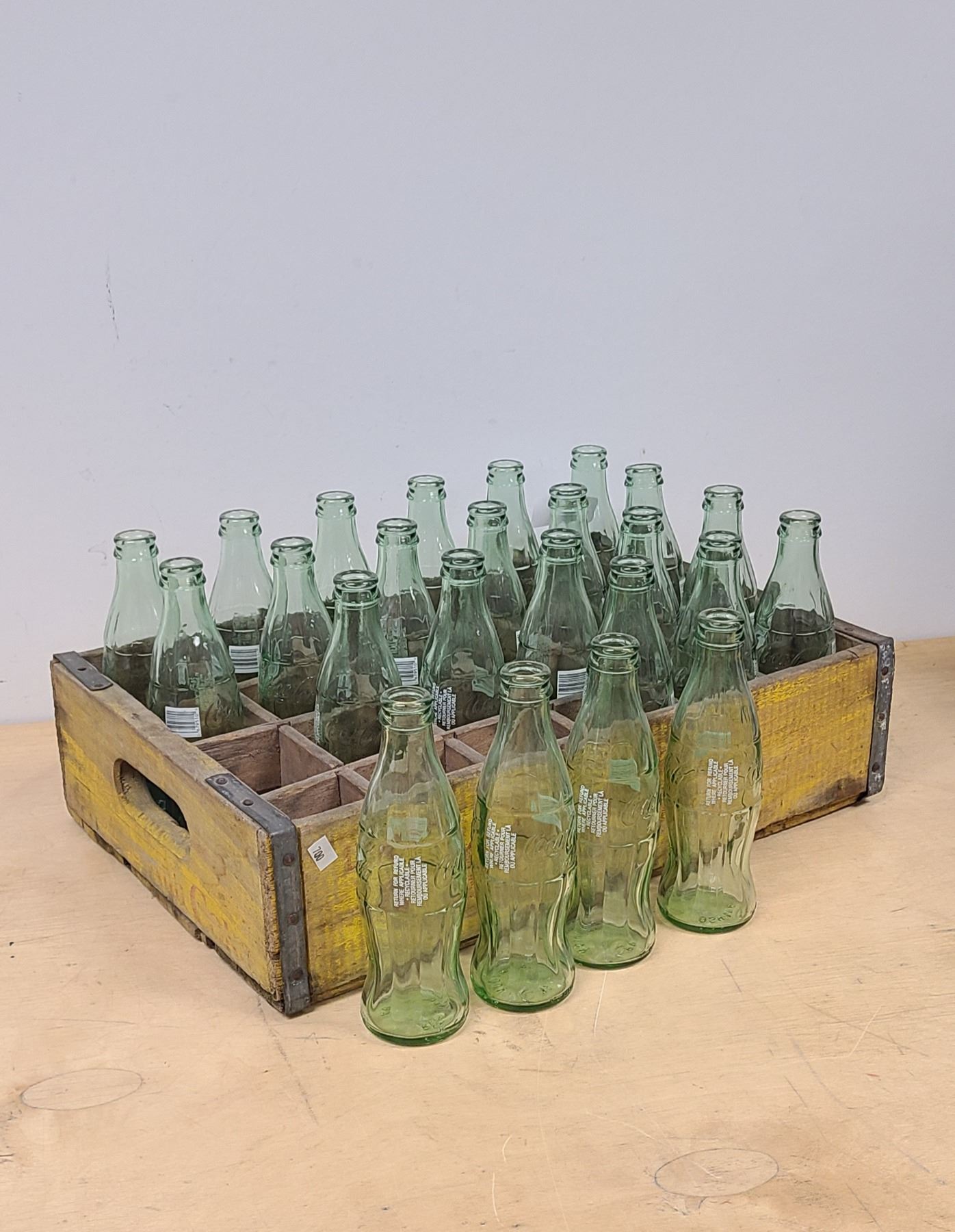 VINTAGE COCA-COLA CRATE W/MODERN BOTTLES