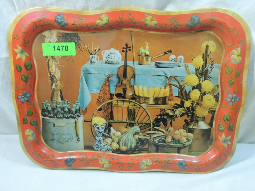 1960s ORIGINAL LITHOGRAPH HOE DOWN, SQUARE DANCE, FALL FESTIVAL TIN SERVING TRAY, COCA COLLECTIBLE, RARE GOOD CONDITION AS SHOWN SEE PHOTO FOR MORE DETAILS.