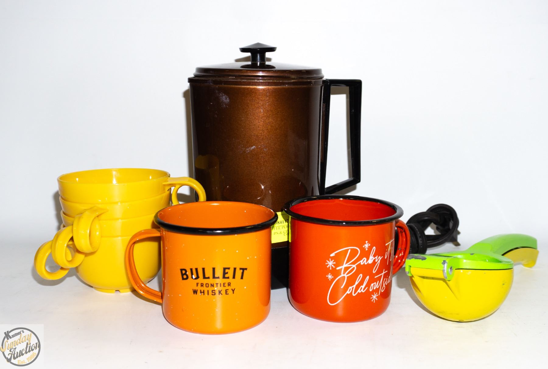 VINTAGE COFFEE PERCOLATOR ELECTRIC, CUPS & CITRUS