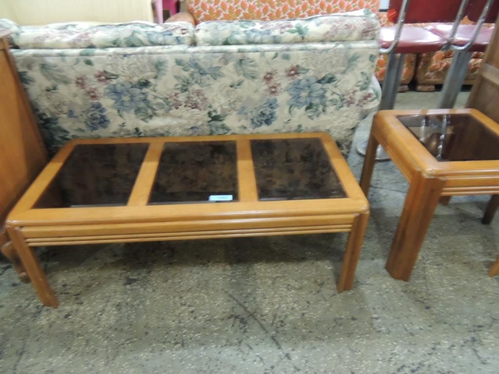 MATCHING SET. VINTAGE COFFEE TABLE. WOODEN AND GLASS TABLE. COFFEE TABLE AND MATCHING SIDE TABLE. AS SHOWN. SEE PHOTO FOR MORE DETAILS.