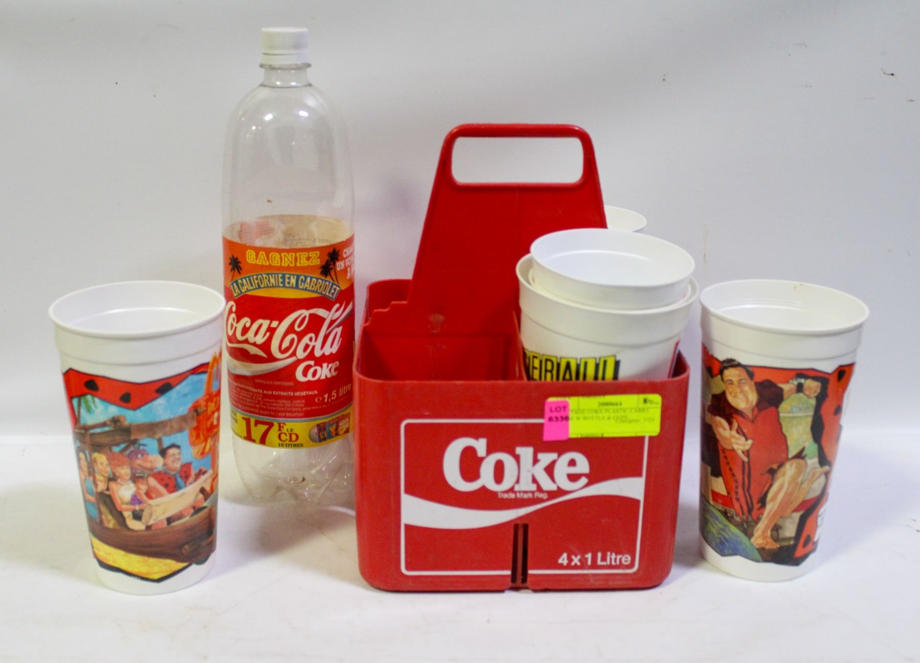 VINTAGE COKE PLASTIC CARRY CASE W BOTTLE & CUPS