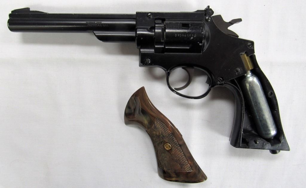 CO2 POWERED DOUBLE ACTION REVOLVER- WITH ORIGINAL BOX! UNTESTED BUT IN VERY GOOD CONDITION.