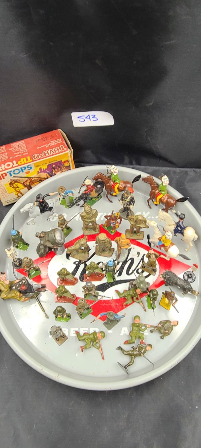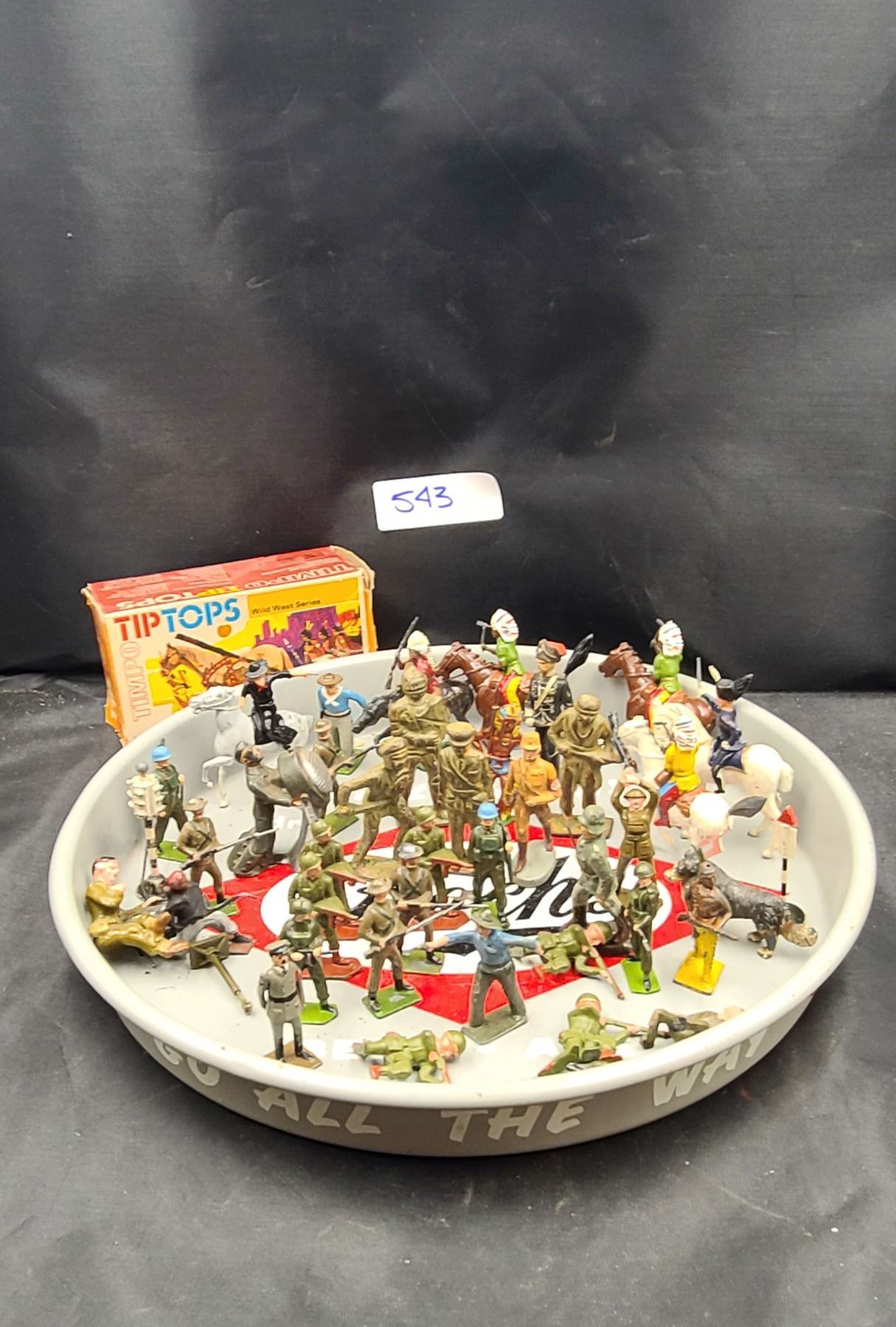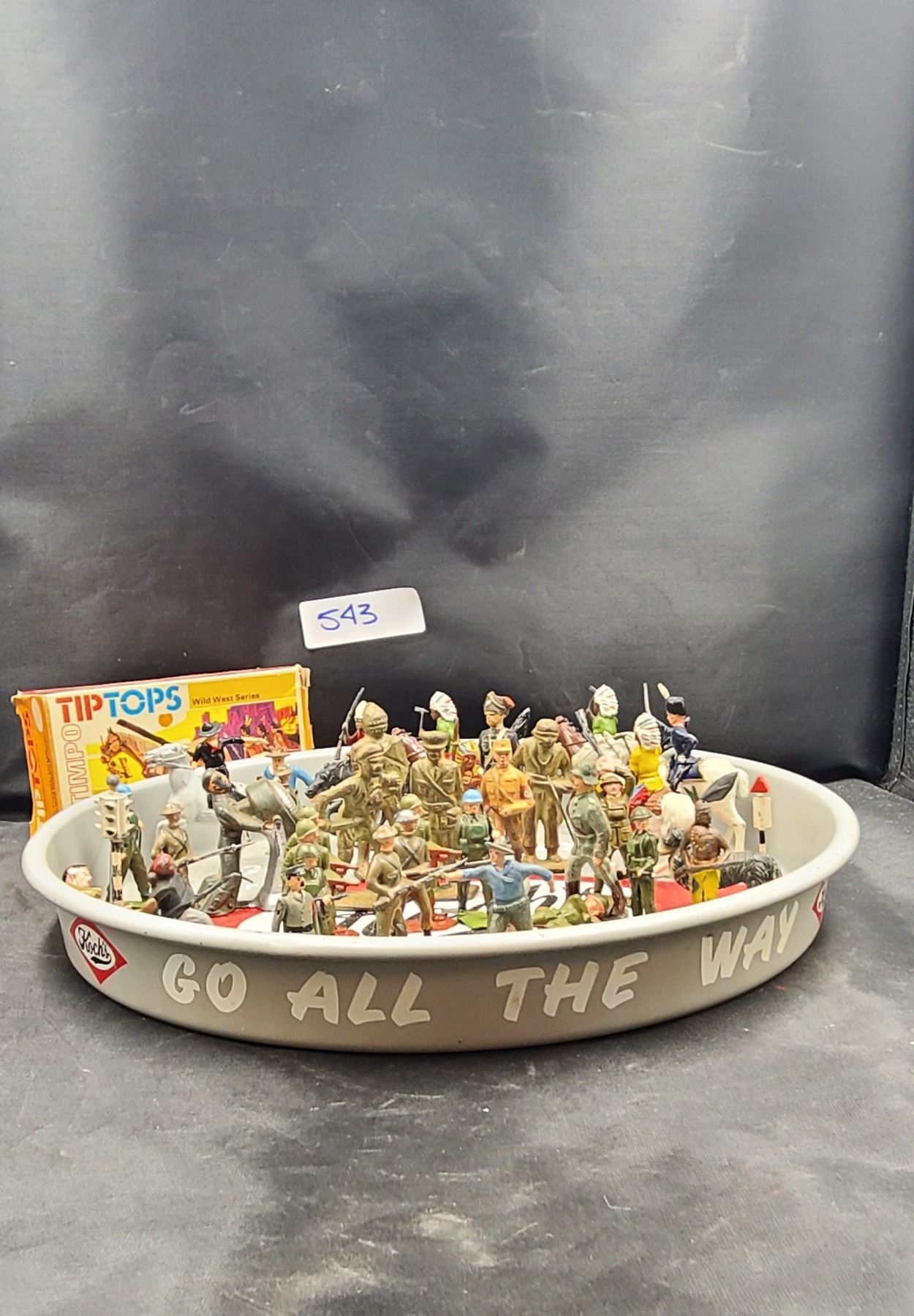 VINTAGE COLES BEER TRAY W/METAL TOY SOLDIERS
