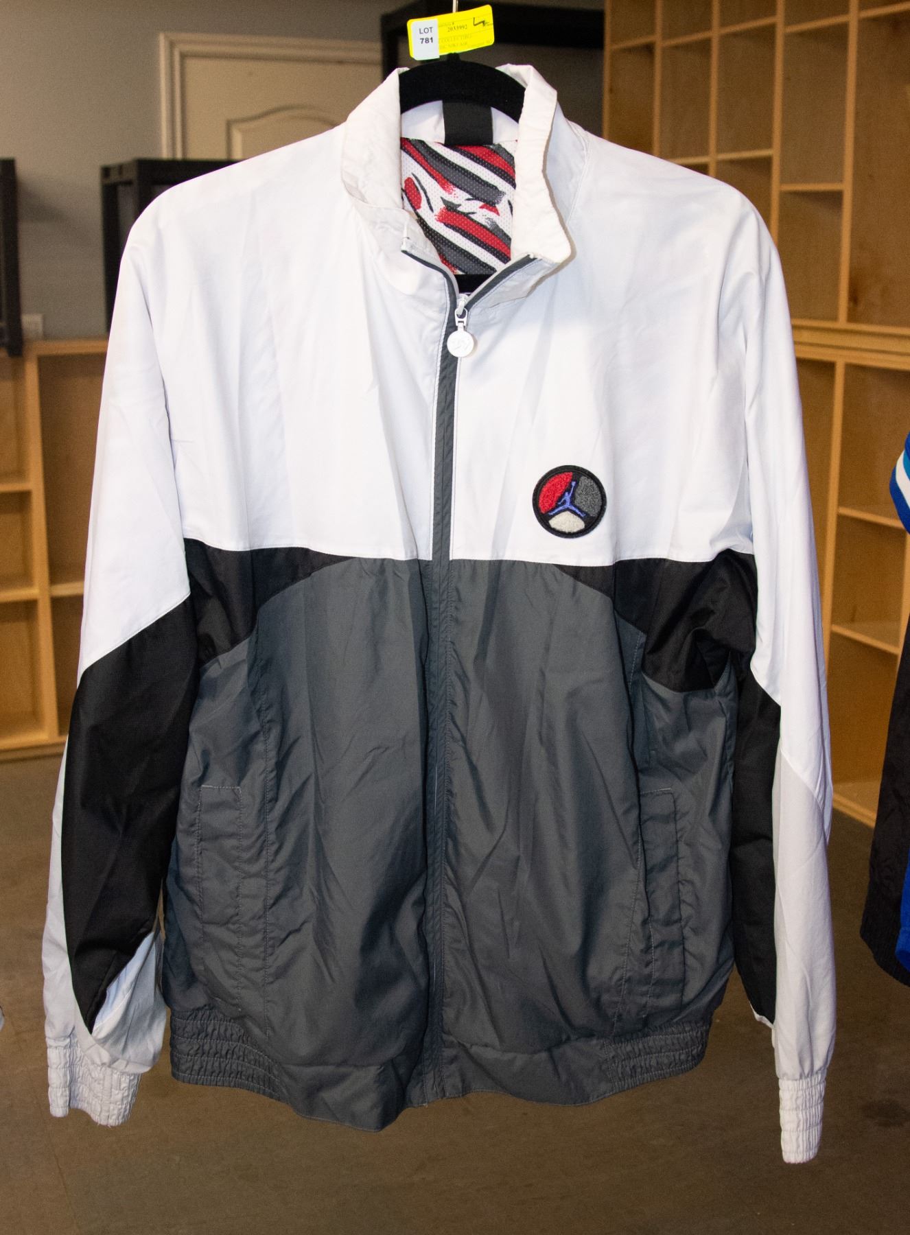 JORDAN GREY & WHITE WINDBREAKER JACKET - MEN'S SIZE M (IN EXC. CONDITION)**ALL ITEMS MUST BE REMOVED BY 5PM MONDAY, OCTOBER 10TH, 2022. ALL REMAINING ITEMS WILL BE SUBJECT TO A $6.00 PER DAY STORAGE CHARGE. ANY ITEMS REMAINING AFTER MONDAY, OCTOBER 24TH, 2022 WILL BE CONSIDERED FORFEITED. NO REFUNDS WILL BE ISSUED FOR FORFEITED ITEMS. TO SCHEDULE A PICK UP APPOINTMENT CLICK HERE