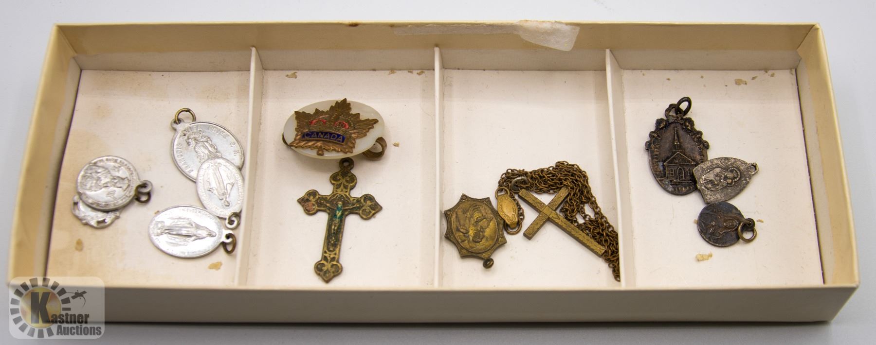 VINTAGE COLLECTION OF WAR/RELIGIOUS PINS, PENDANT