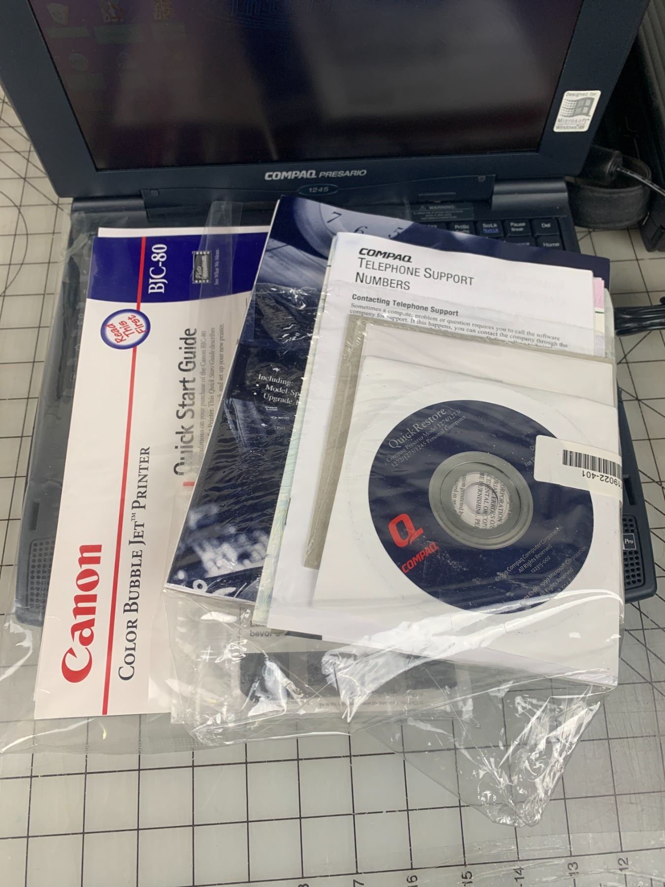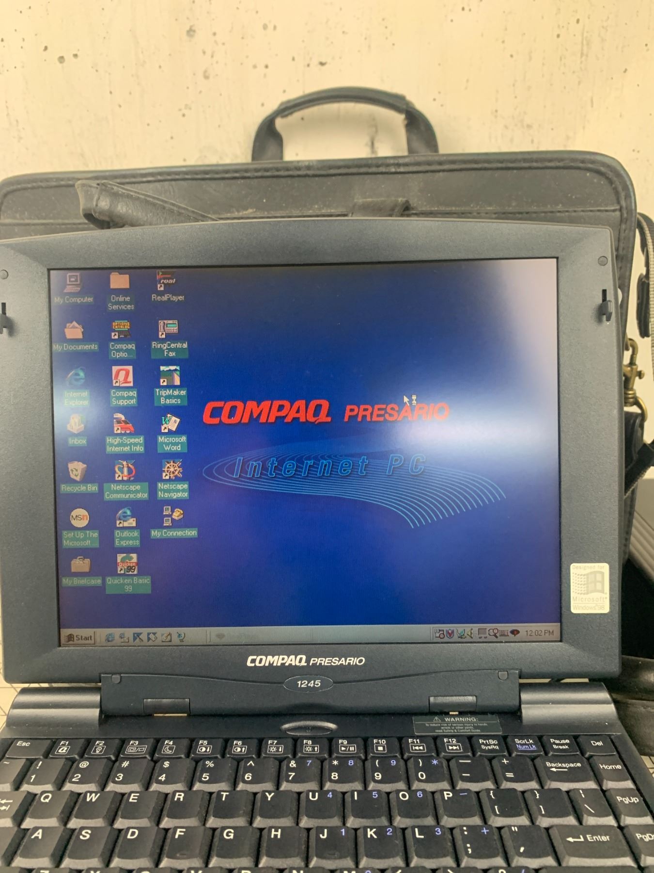 VINTAGE COMPAQ PRESARIO LAPTOP WITH WINDOWS 98 PRINTER AND BAG WORKING