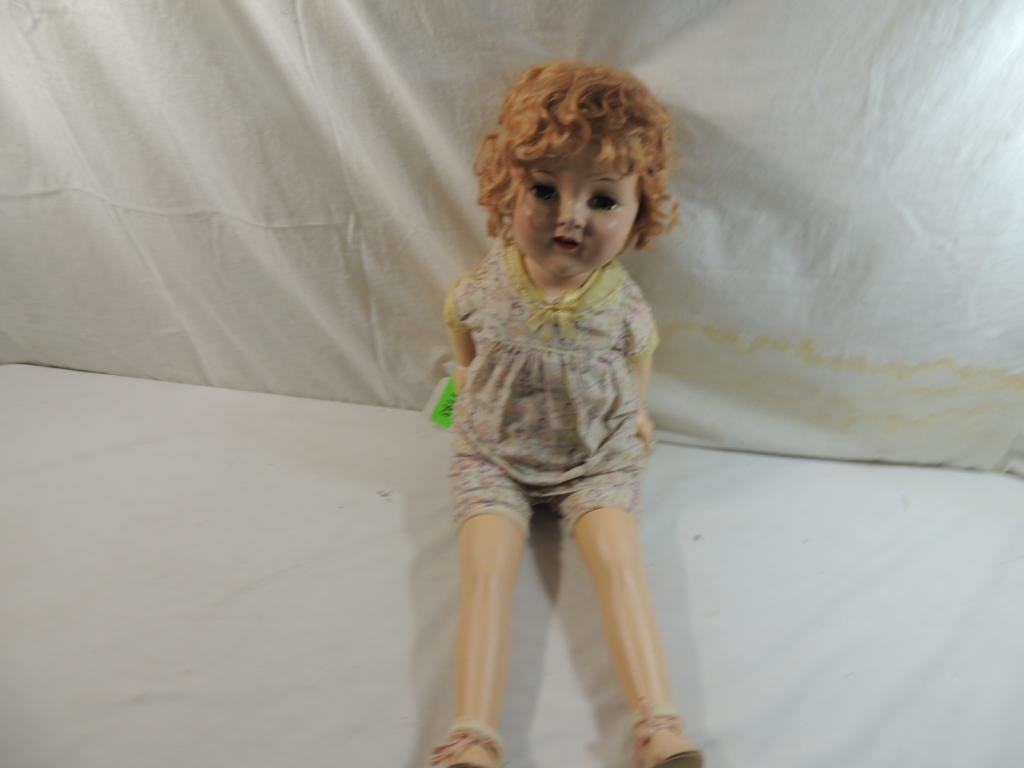 VINTAGE COMPOSITE DOLL 27" TALL DOLL VINTAGE DOLL. YARN HAIR AS SHOWN SEE PHOTO FOR MORE DETAILS.