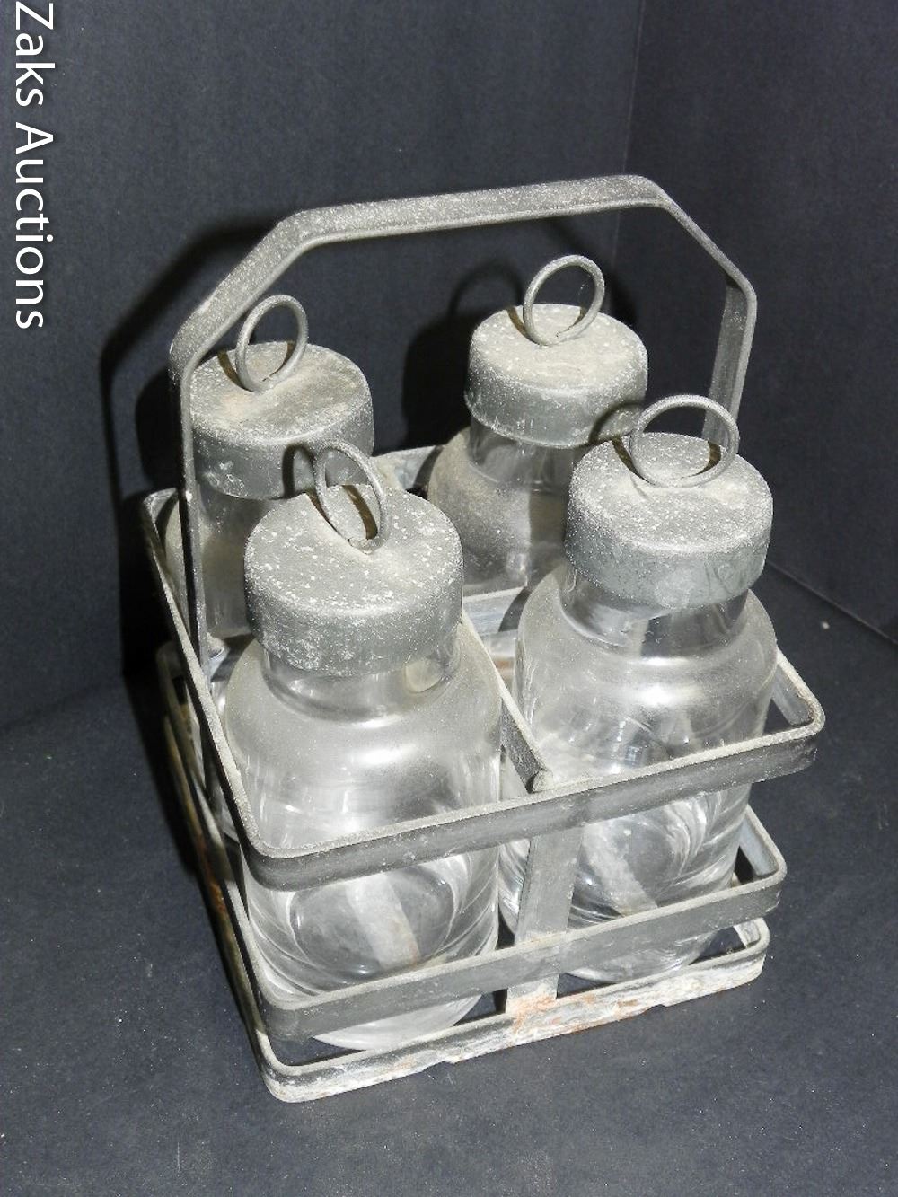 VINTAGE CONDIMENT TRAY WITH GLASS JARS AND LIDS