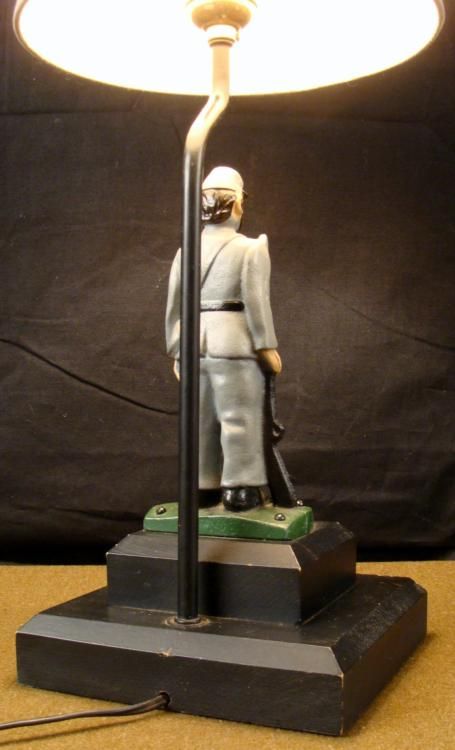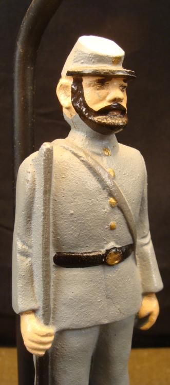 VINTAGE CONFEDERATE CIVIL WAR TABLE LAMP WITH SHADE-16" TALL-W/CONFEDERATE SOLDIER * * GREAT LOOKING PIECE WITH A CONFEDERATE CIVIL WAR SOLDIER MOUNTED ON A DOUBLE TIERED WOOD PLATFORM-SOLDIER IS METAL WITH HIS GRAY UNIFORM-COMES WITH A GRAY SHADE-PLAQUE ON PLATFORM READS "1861-1961"- FULLY FUNCTIONAL LAMP-BULB NOT INCLUDED