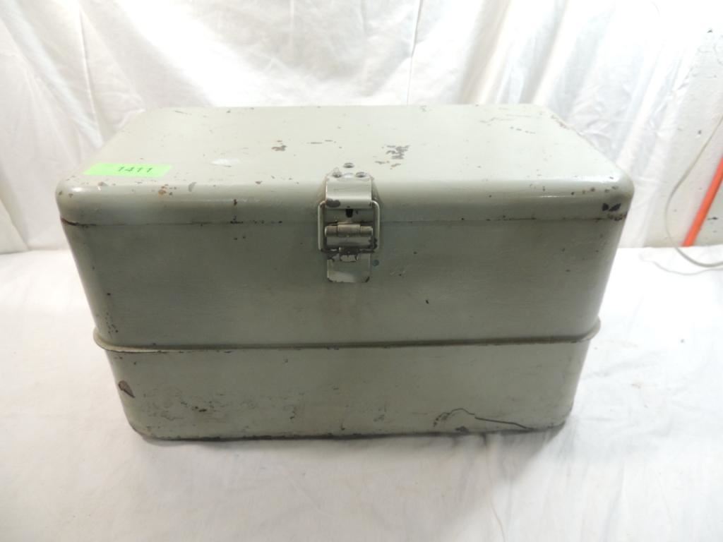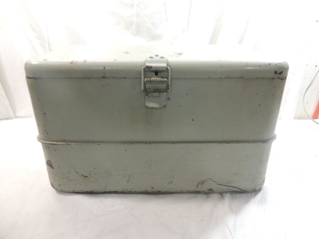 METAL COOLER, VINTAGE COOLER, PAINTED COOLER, AS SHOWN SEE PHOTO FOR MORE DETAILS.