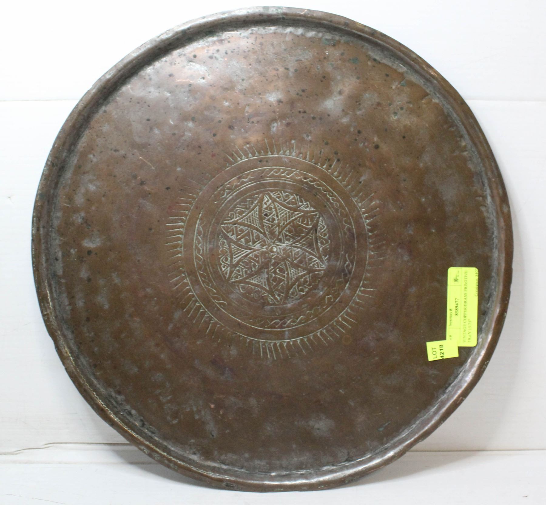 VINTAGE COPPER/BRASS PRIMITIVE TRAY 15.75"