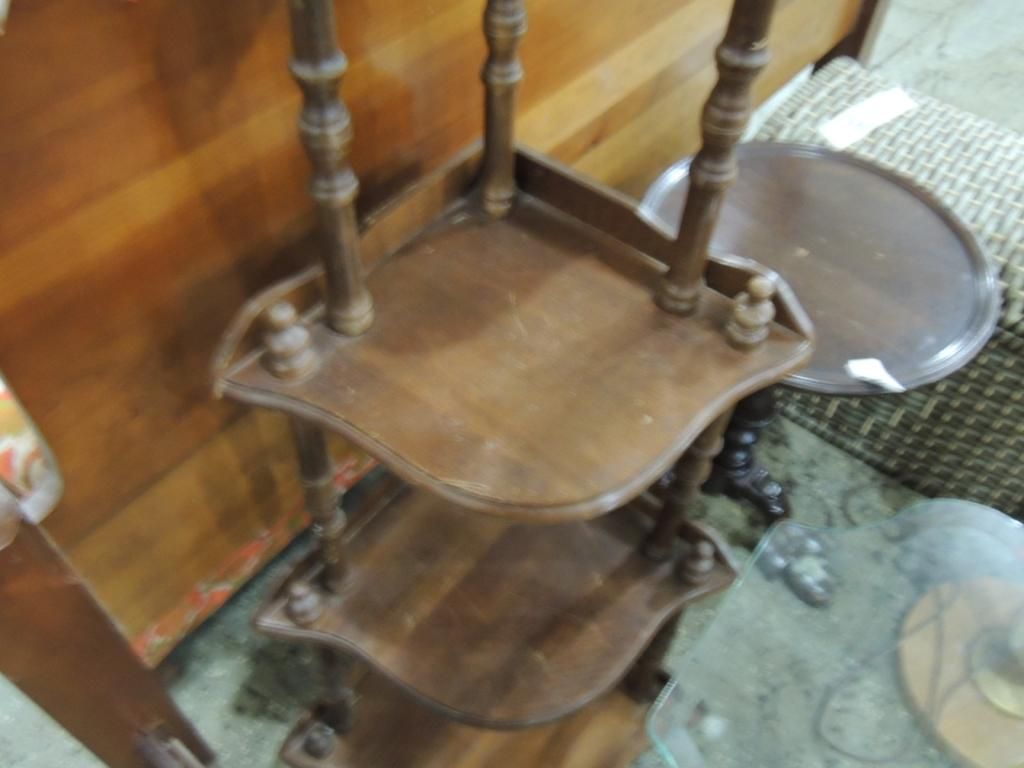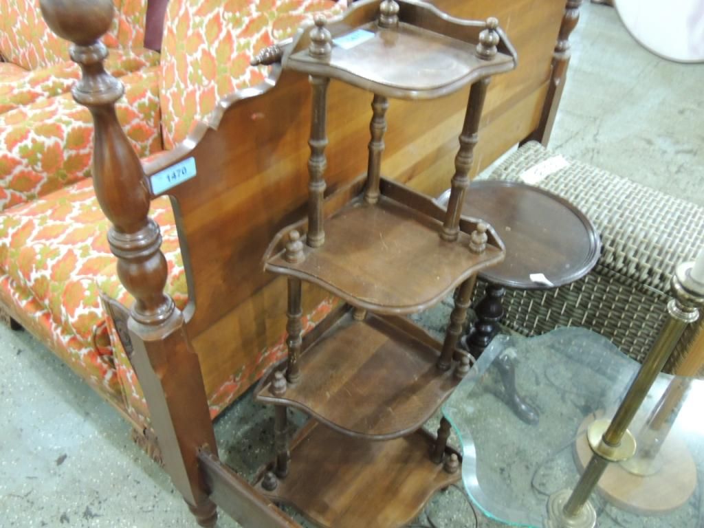 DECORATIVE WOODEN CORNER SHELFS. 4 SHELVES 40" TALL AS SHOWN SEE PHOTO FOR MORE DETAILS.