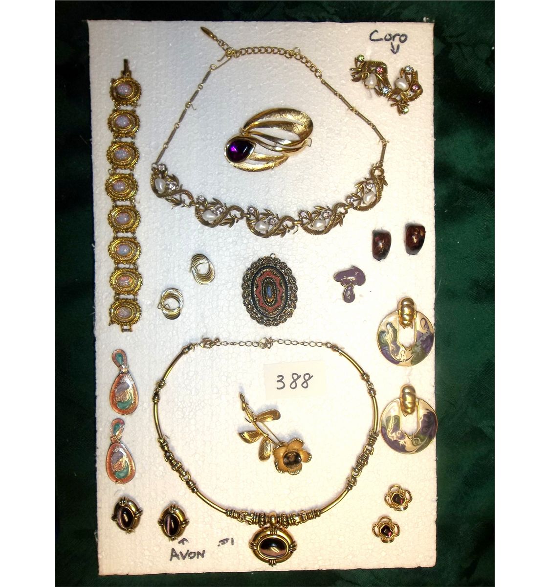 VINTAGE COSTUME JEWELRY - AVON NECKLACE & EARRING SET, CORO EARRINGS ETC