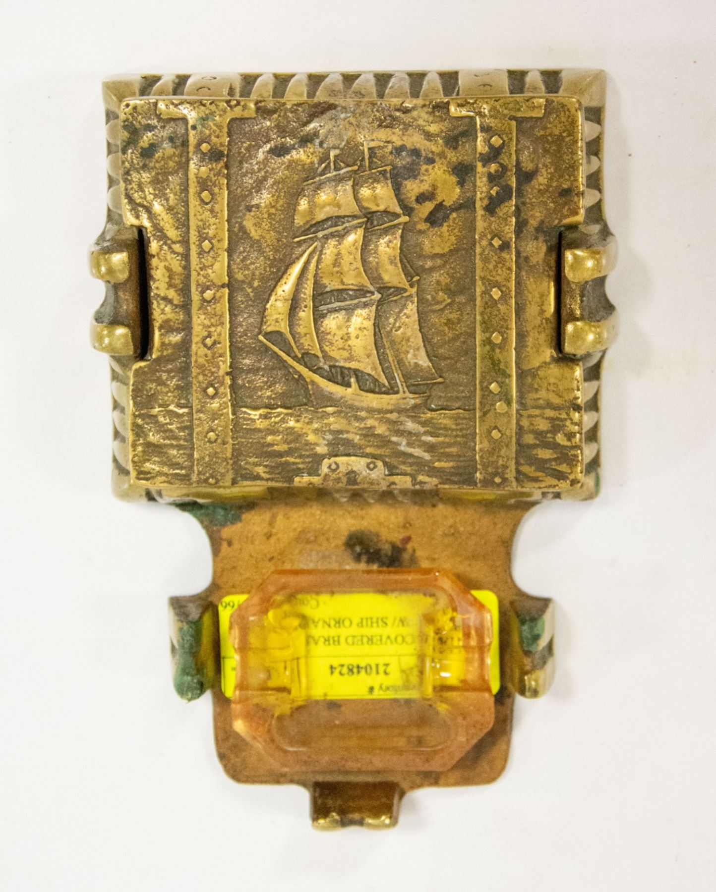 VINTAGE COVERED BRASS ASHTRAY W/ SHIP DESIGN
