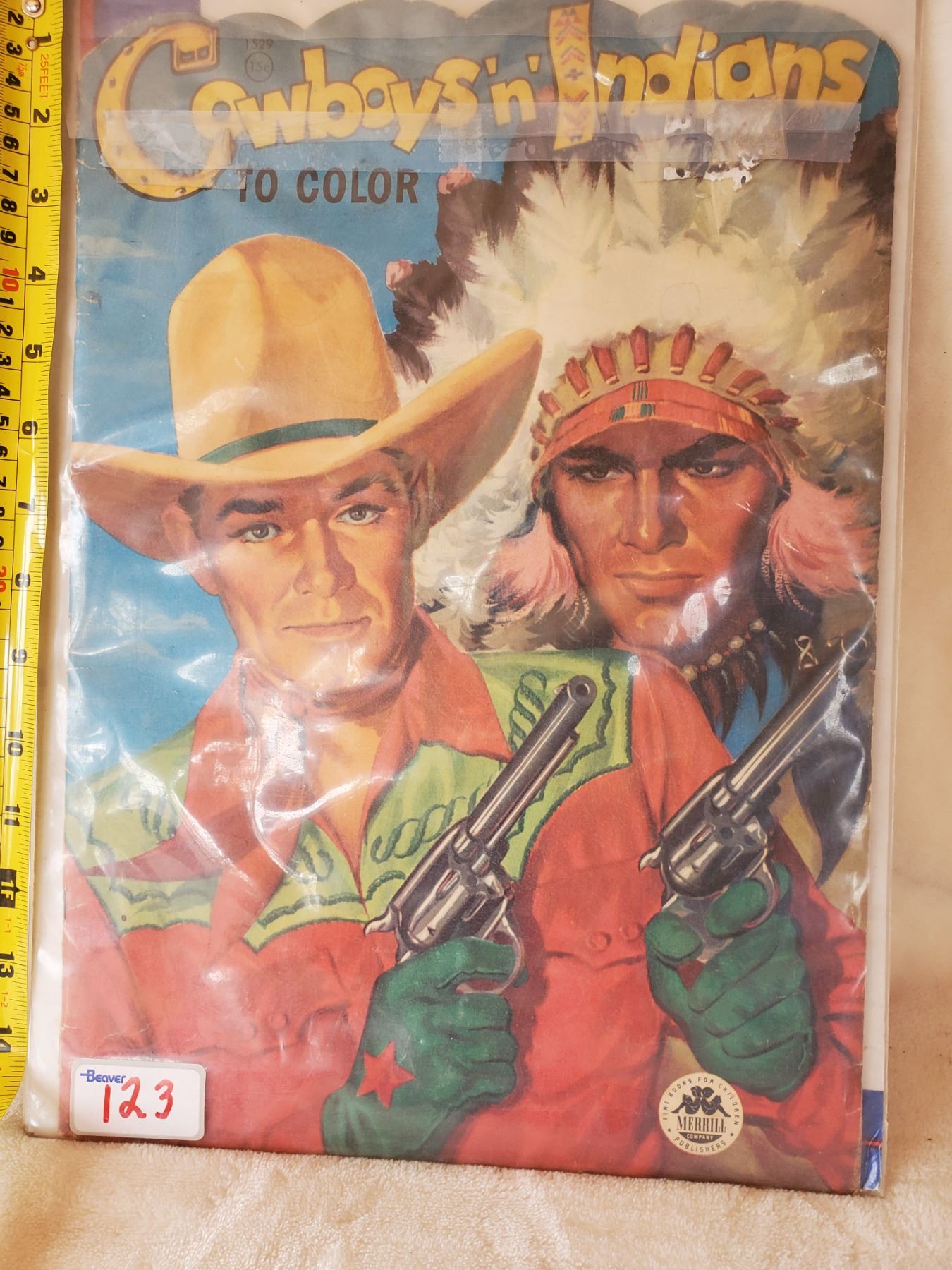 VINTAGE COWBOYS 'N' INDIANS COLORING BOOK-USED BUT COLORFUL COVER