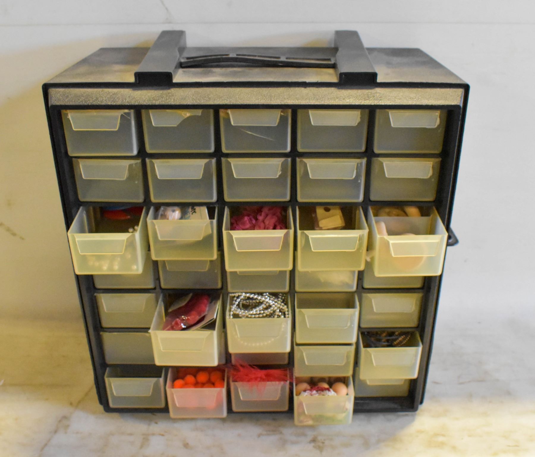 VINTAGE CRAFT STORAGE WITH CONTENTS