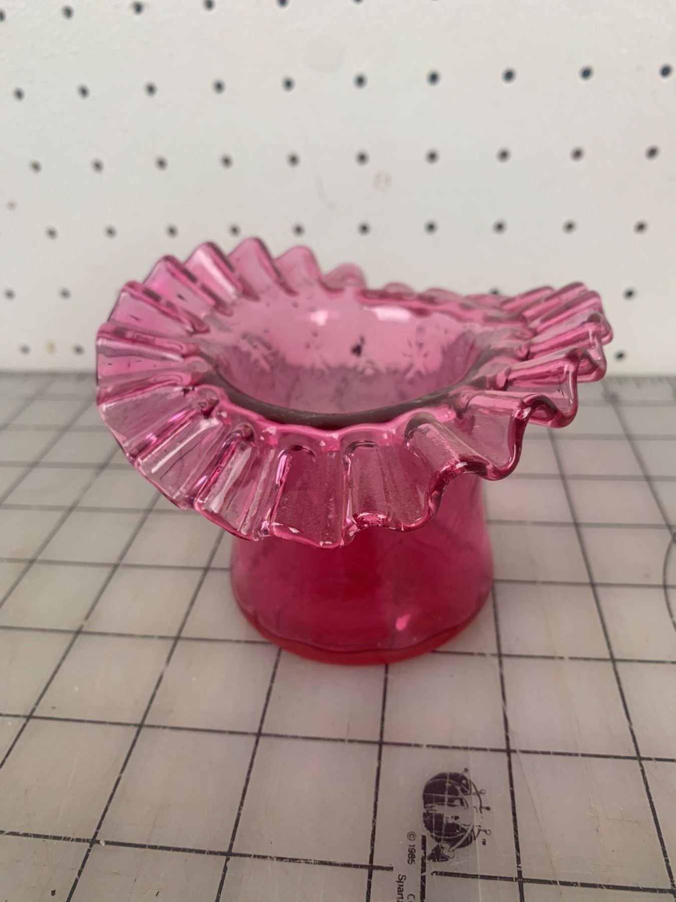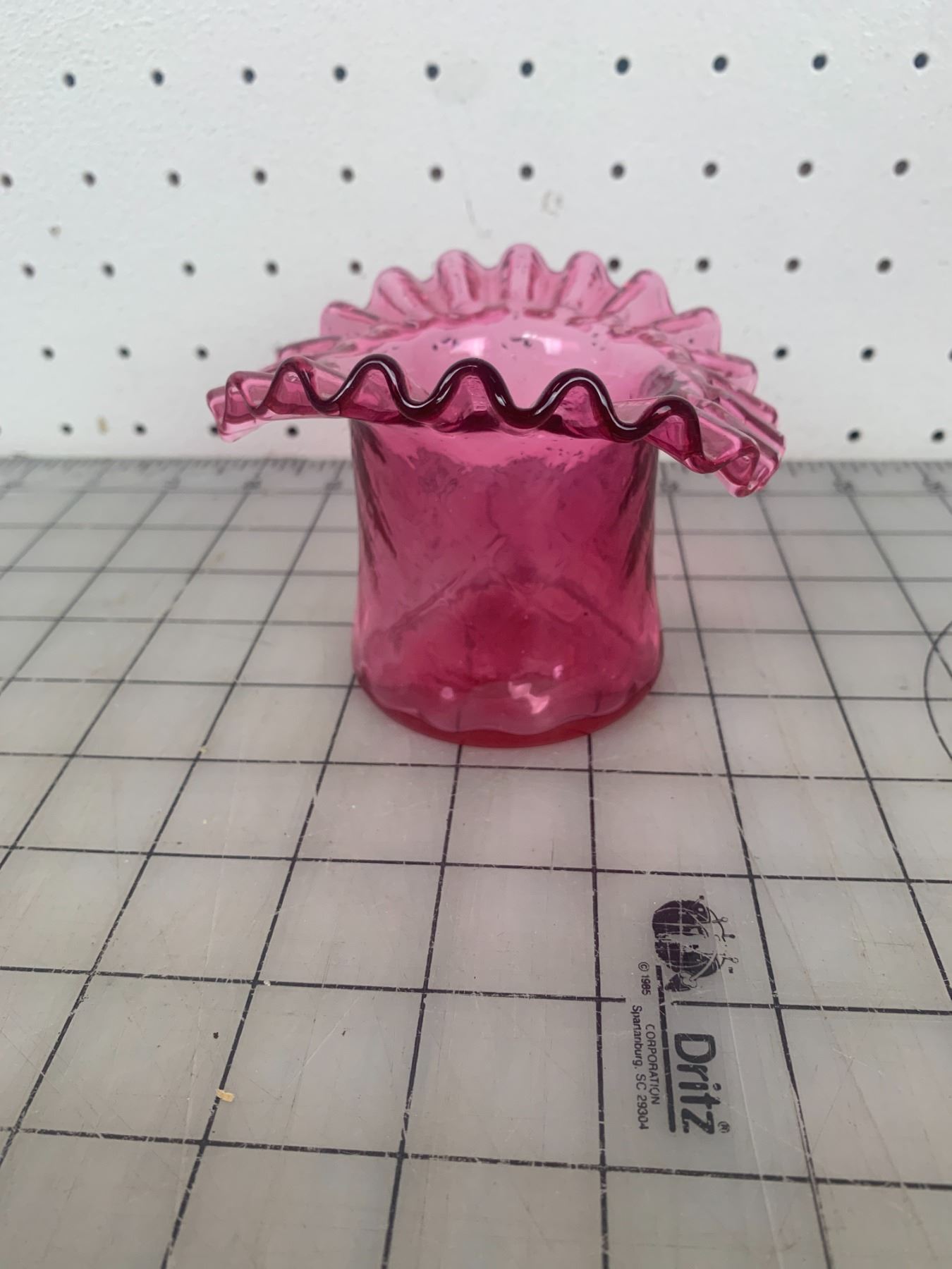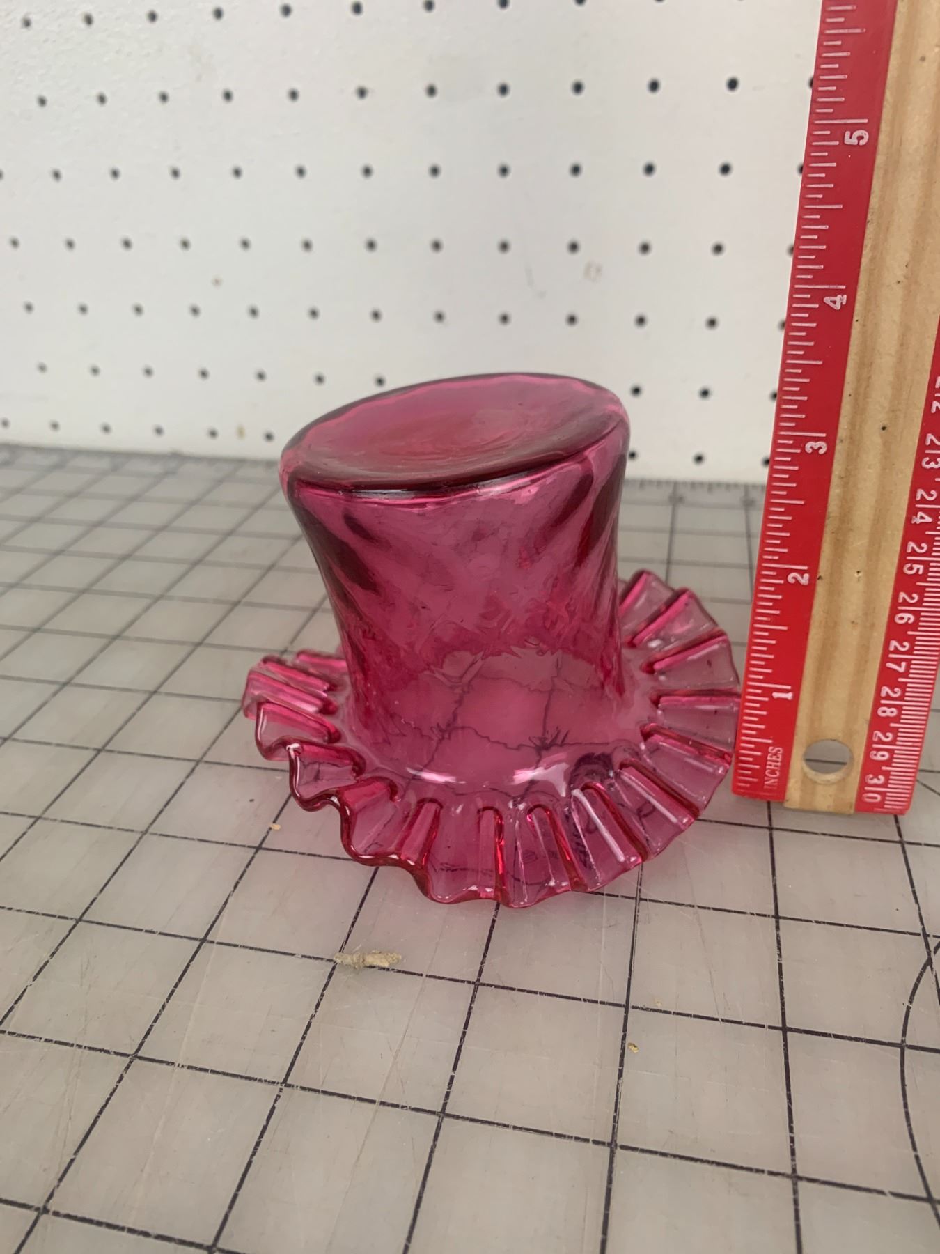 VINTAGE CRANBERRY GLASS TOP HAT VASE