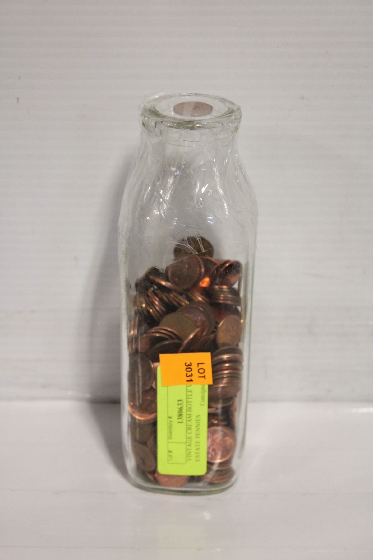 VINTAGE CREAM BOTTLE W/ ESTATE PENNIES
