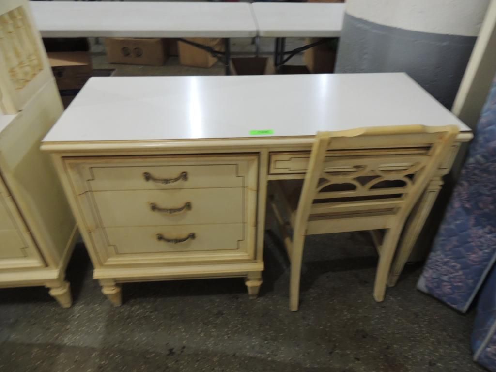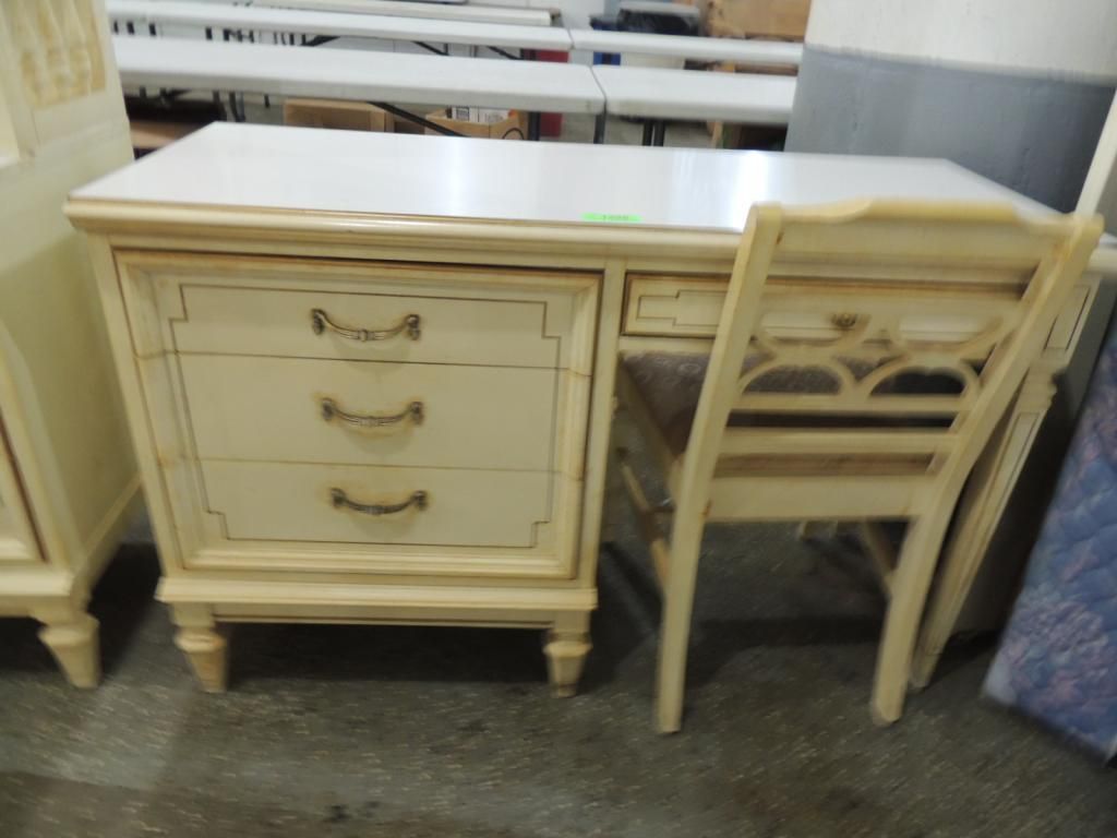 BEAUTIFUL DESK WITH CHAIR DRAWERS AS SHOWN SEE PHOTO FOR MORE DETAILS.