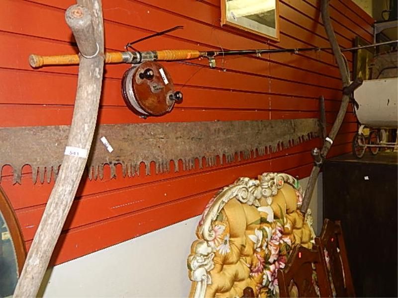 VINTAGE CROSS CUT SAW WITH 2 WOOD HANDLES