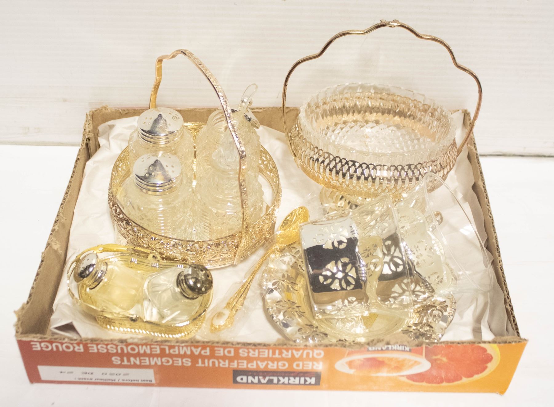 VINTAGE CRUET SERVINGWARE GLASS/METAL LOT OF 5PCS