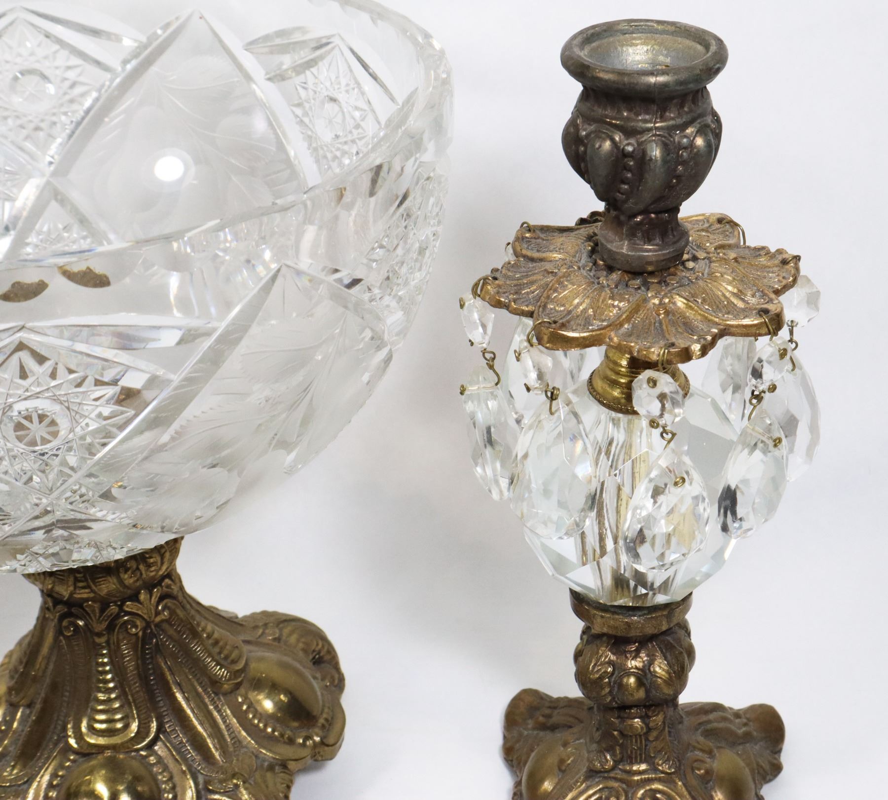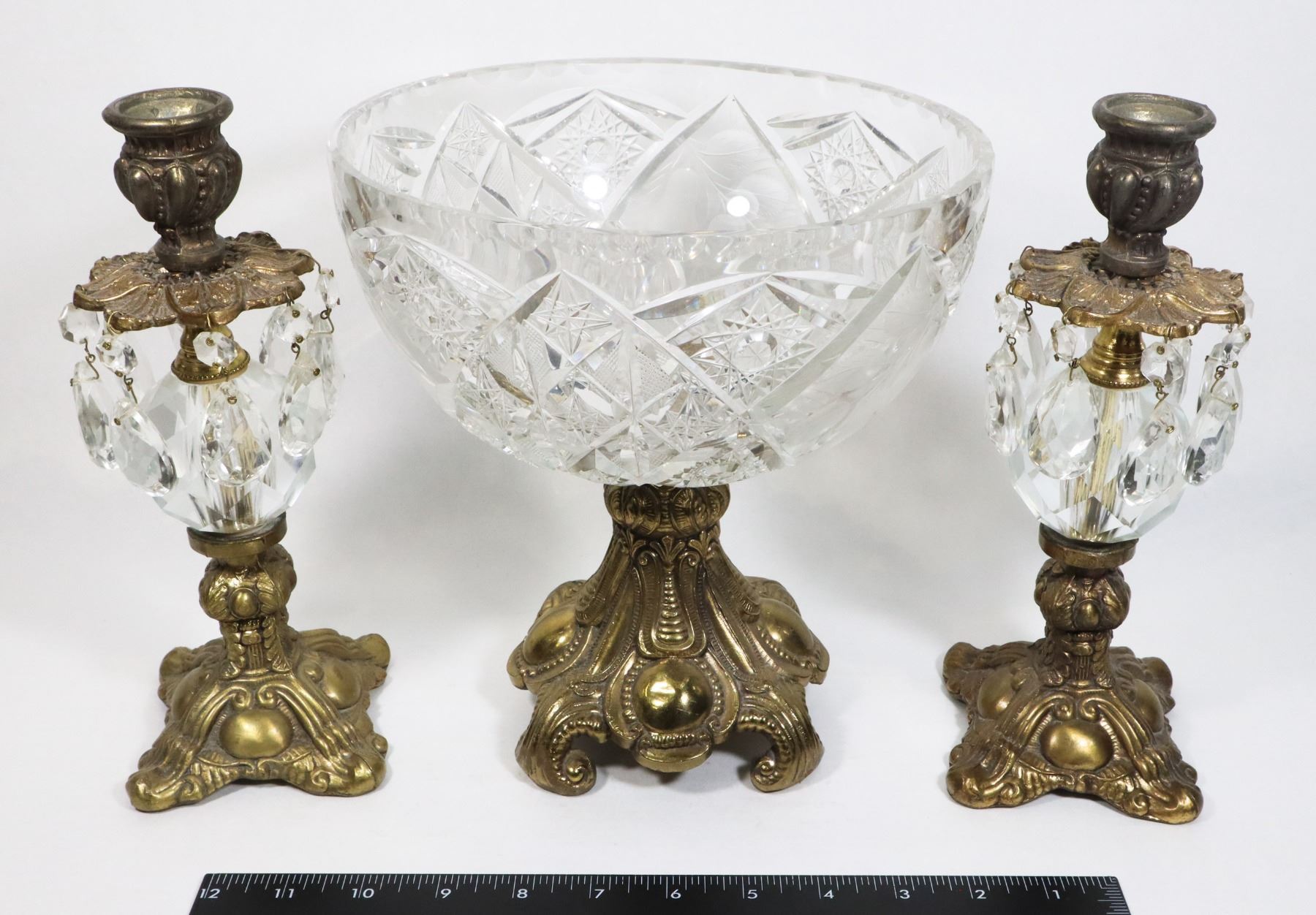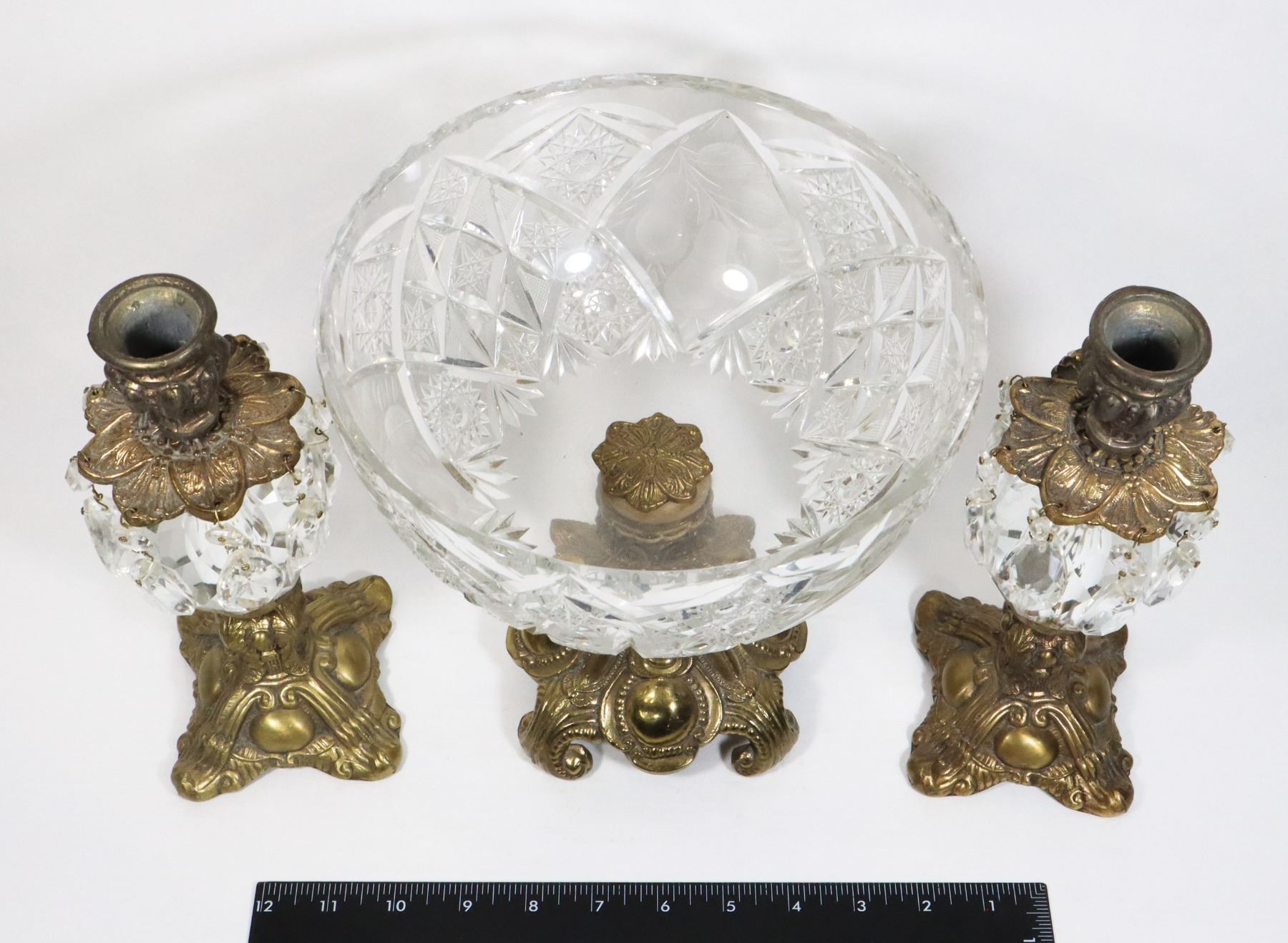 VINTAGE CRYSTAL BOWL ON BRASS STAND WITH