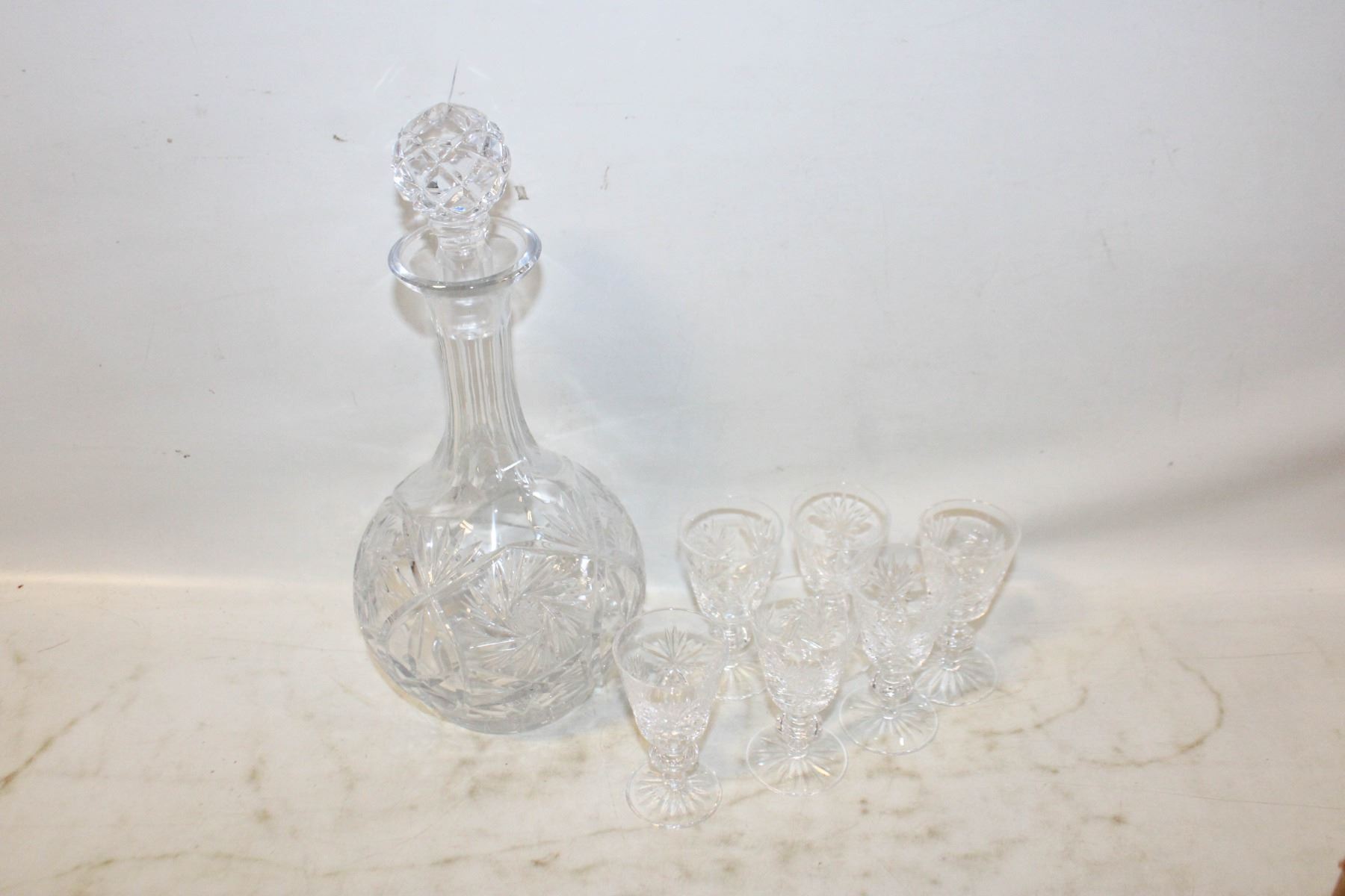 VINTAGE CRYSTAL DECANTER & GLASSES