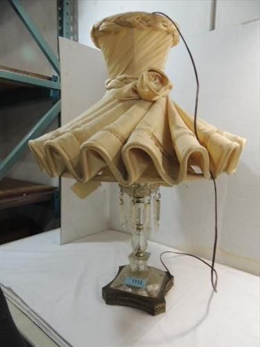 VINTAGE CRYSTAL FRENCH PROVINCIAL TABLE LIGHT & SHADE. 31"H. AS SHOWN. VIEW PICTURE FOR DETAIL.