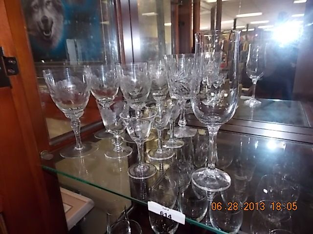 VINTAGE CRYSTAL GLASSES - SUN FLOWER & WHEAT PATTER - 6PC