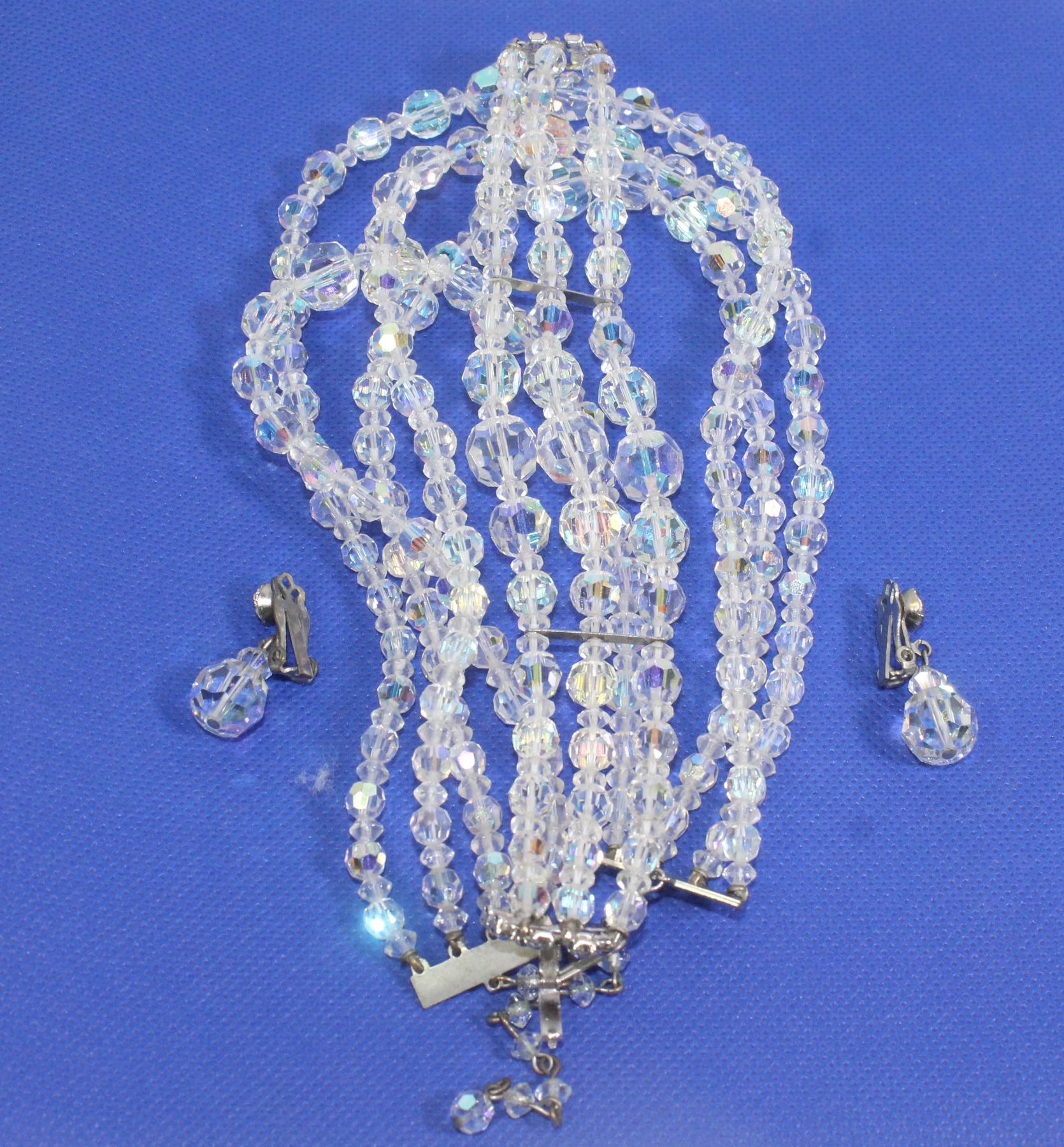 VINTAGE CRYSTAL NECKLACE, BRACELET + EARRING SET