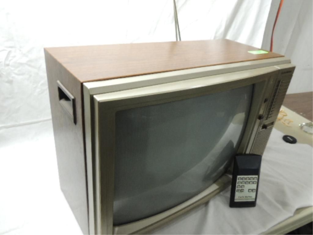 VINTAGE CURTIS MATHIS 20" TELEVISION SET & CHANNEL CHANGER. AS SHOWN. VIEW PICTURE FOR DETAIL.