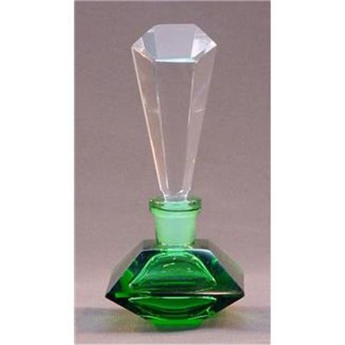 Available for purchase is an absolutely BEAUTIFUL Vintage Czechoslovakian Perfume Bottle. This Stunning Perfume Bottle was part of a magnificent collection of vintage late 1940?s to early 1950?s inventory which lay untouched until recently discovered by the CIO Collection of the Czech Republic. The Bottle is made from the finest quality Emerald Green Glass and is HIGHLY cut & polished. The Lead Crystal Stopper catches light like a Prism reflecting a RAINBOW of colors and is the perfect compliment to the Bottle. This LOVELY Perfume Bottle measures 5? tall (including Stopper) & 3 1/4? across its widest from corner to corner. Both the Bottle & Stopper are in EXCELLENT condition with absolutely NO DAMAGE!! It comes complete in a classy, custom made, 2 piece Satin Lined Presentation Box with a ?Certificate of History? from CIO Collection to guarantee its authenticity as an original. This Perfume Bottle is SURE to make an AMAZING addition to any Collection ... DON?T MISS OUT!! #5050503
