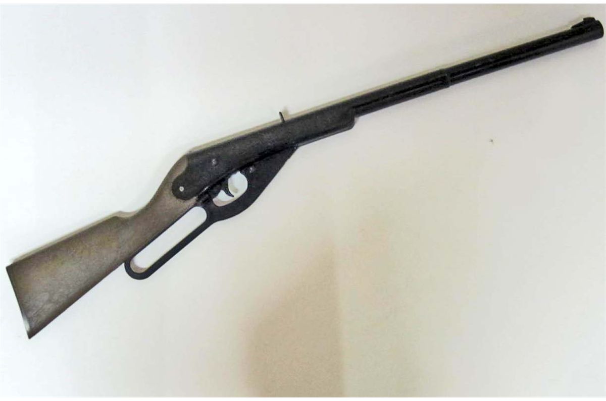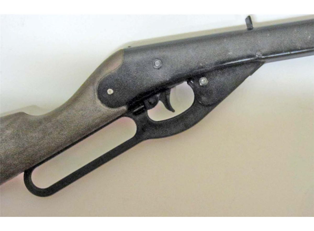 Marked on top of barrel DAISY MODEL 105 B B-B CAL 4.5MM ROGERS AR USA STEEL AIR GUN SHOT. Appears to be in good working order. Approx. 30" long