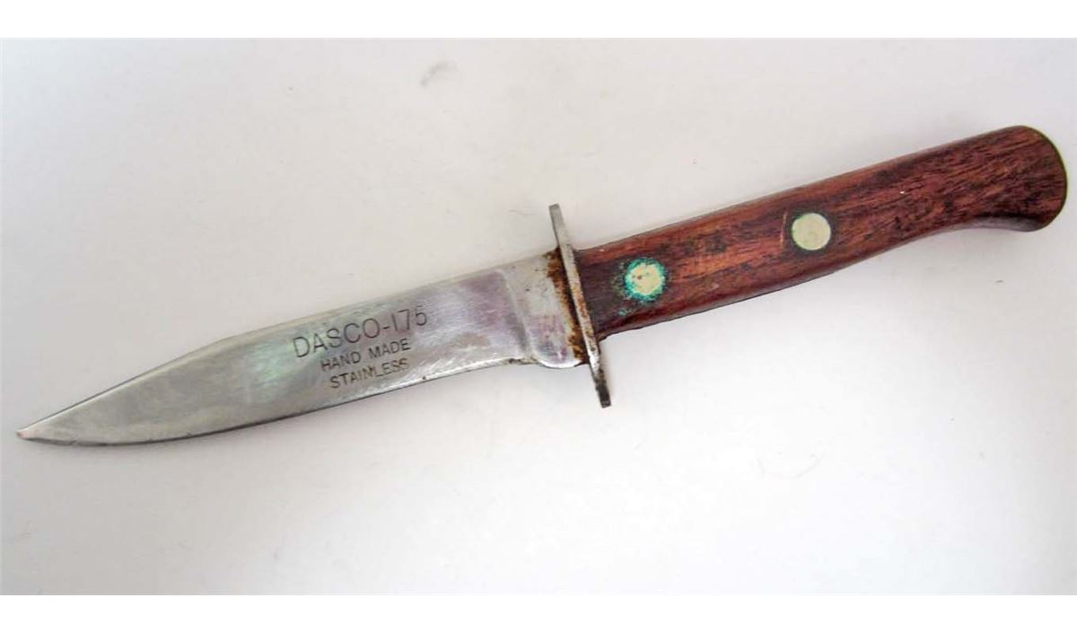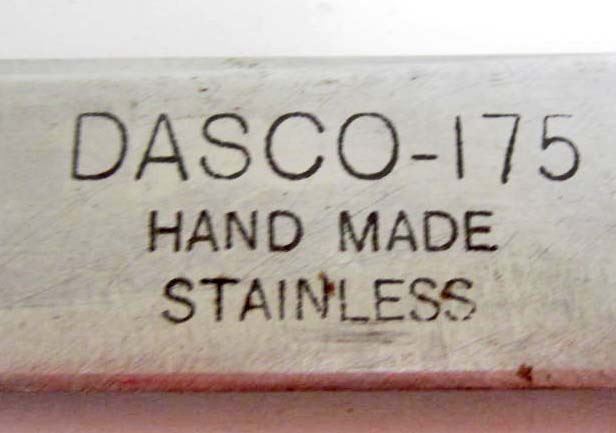 Approx. 10" long overall. Blade is marked DASCO-175 Hand Made Stainless