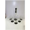 DECANTER & 5 OFFSET GLASSES. NO CHIPS.