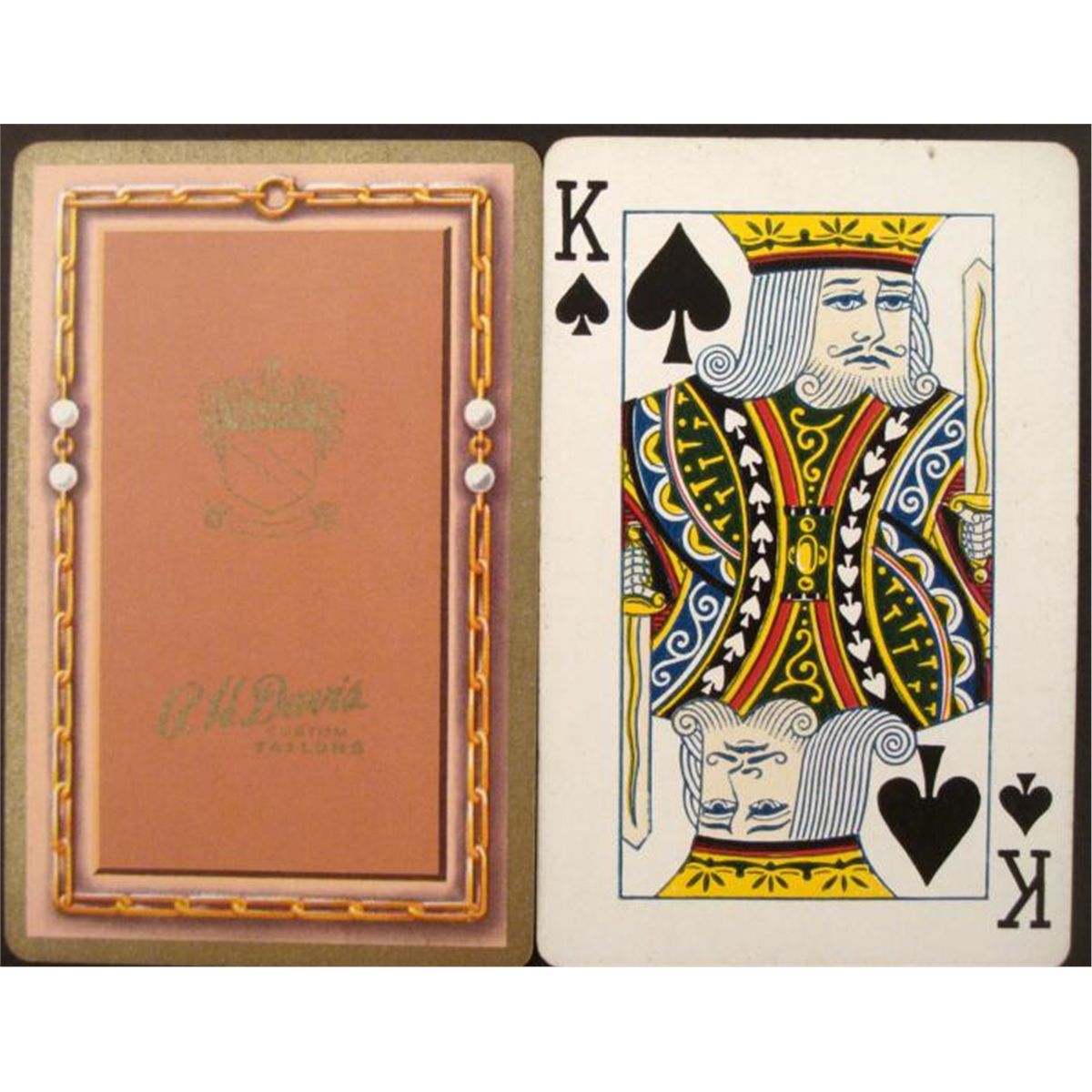 VINTAGE DECK OF 52 PLAYING CARDS IN BOX-P.H., DAVIS-CUSTOM TAILORS * VELOUR TRIMMED BOX-GOLD EDGED CARDS *
