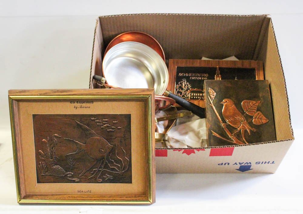 VINTAGE DECORATIVE COPPER- LOT OF 5 ASSORTED