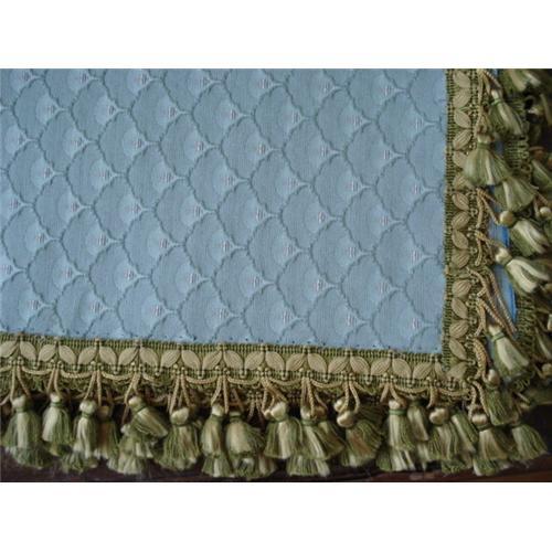 Lovely highly decorative tablecloth of heavy high quality fabric adorned with heavy silk tassel trim. The cloth could be used on tables, as a large tabletopper or just set it on a chair for that special effect. It measures about 48 inches by 44 inches, in wonderful condition, one tiny spot (which can be removed) otherwise perfect. A lovely addition to your vintage textiles collection.